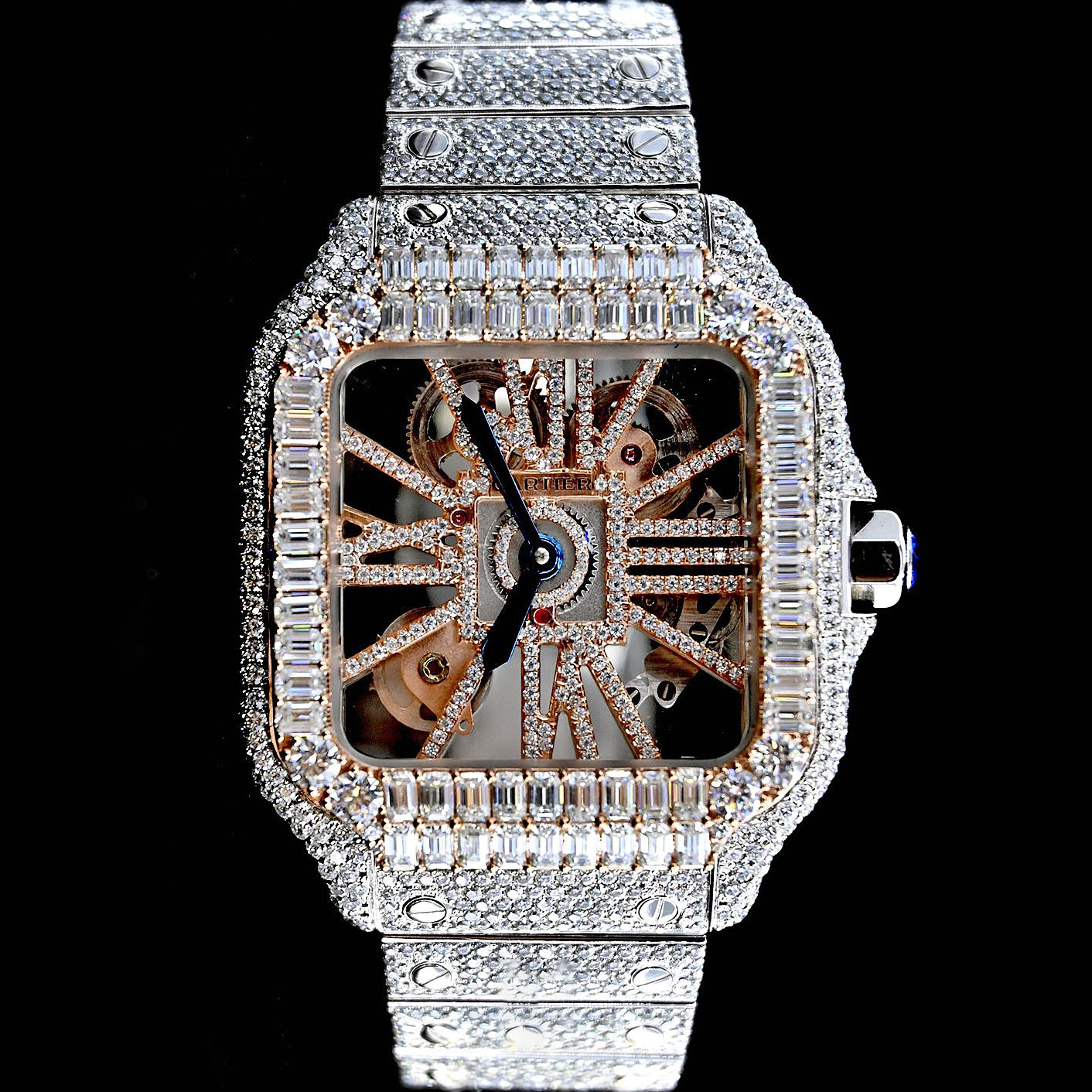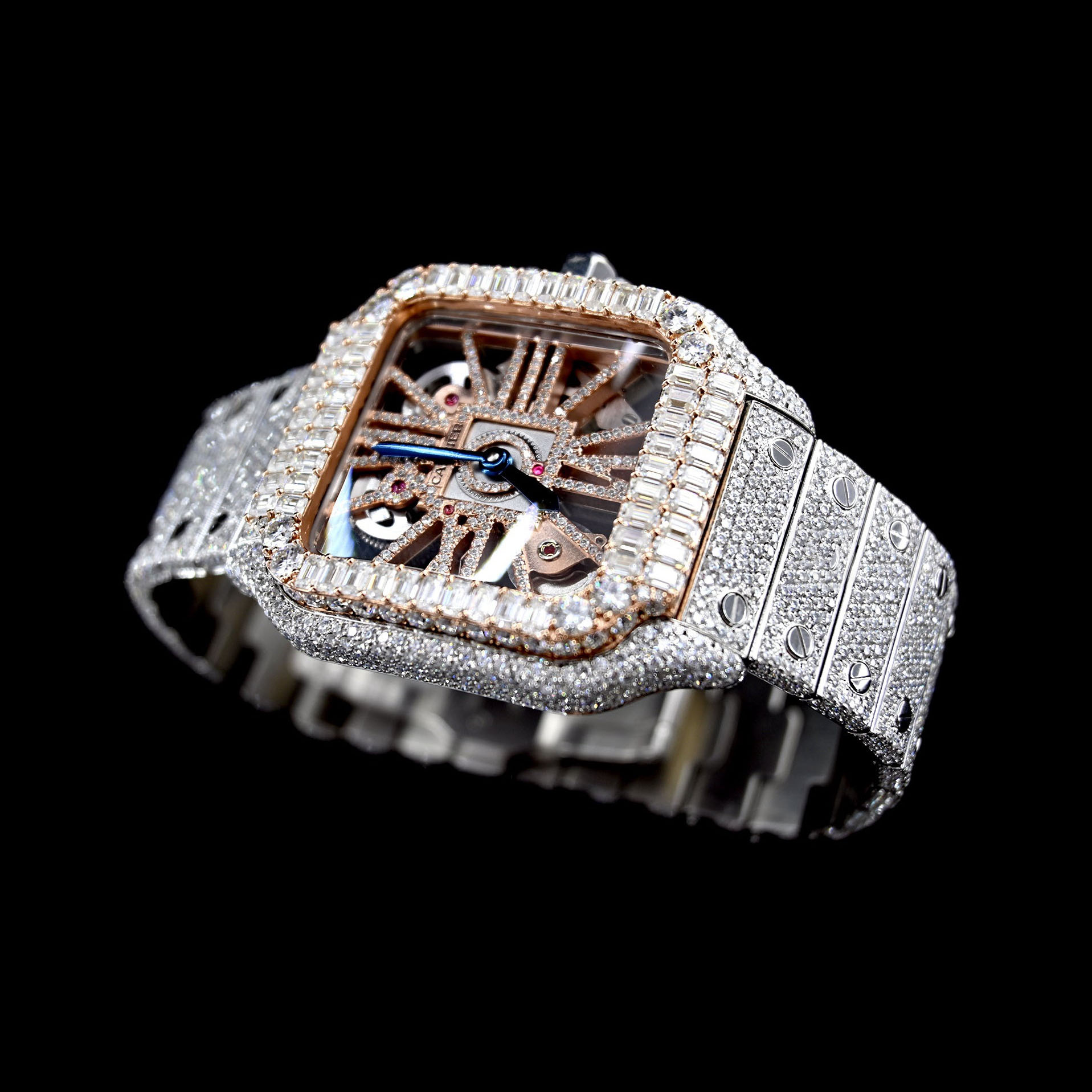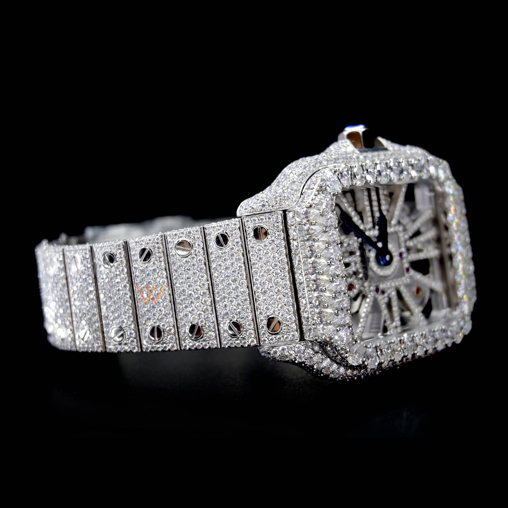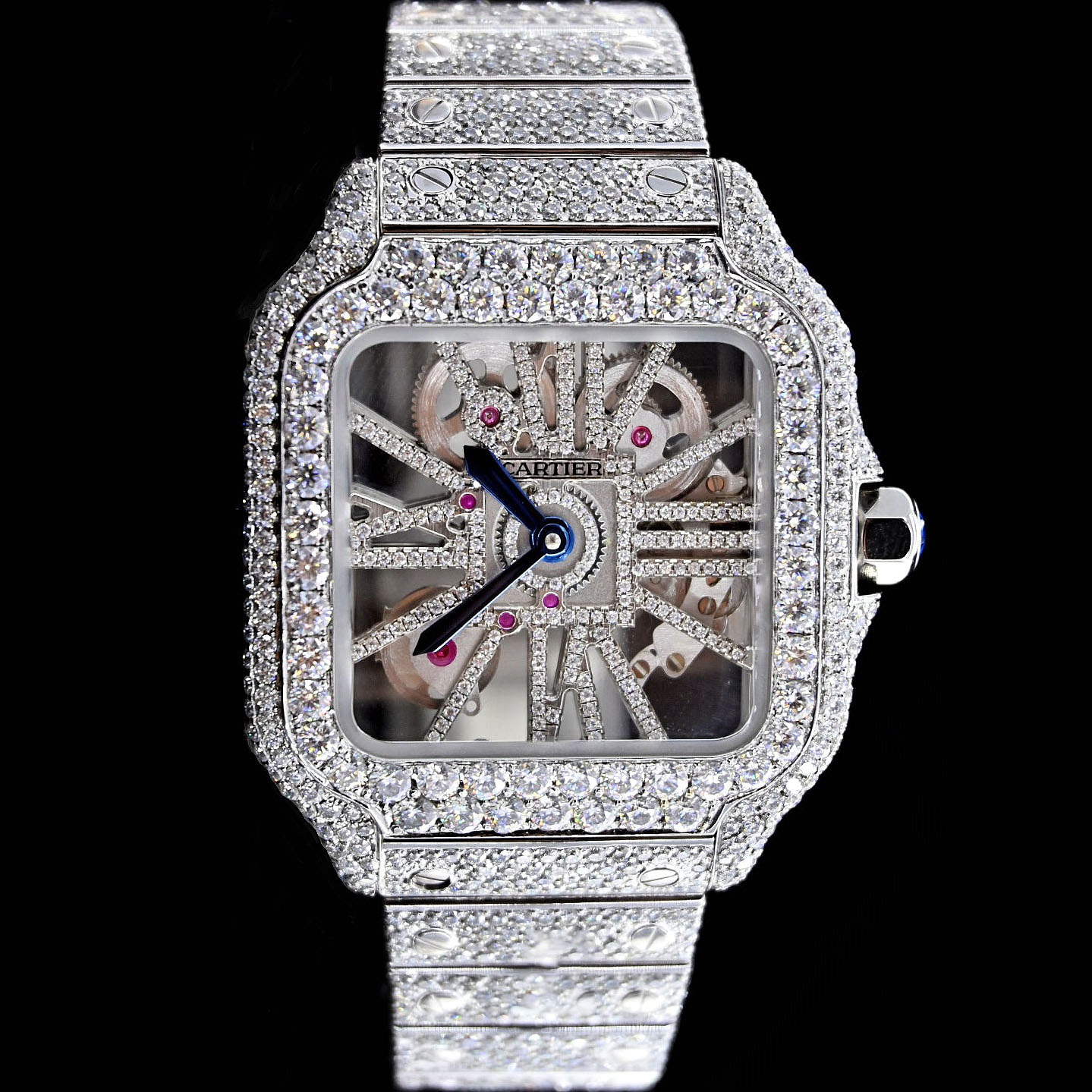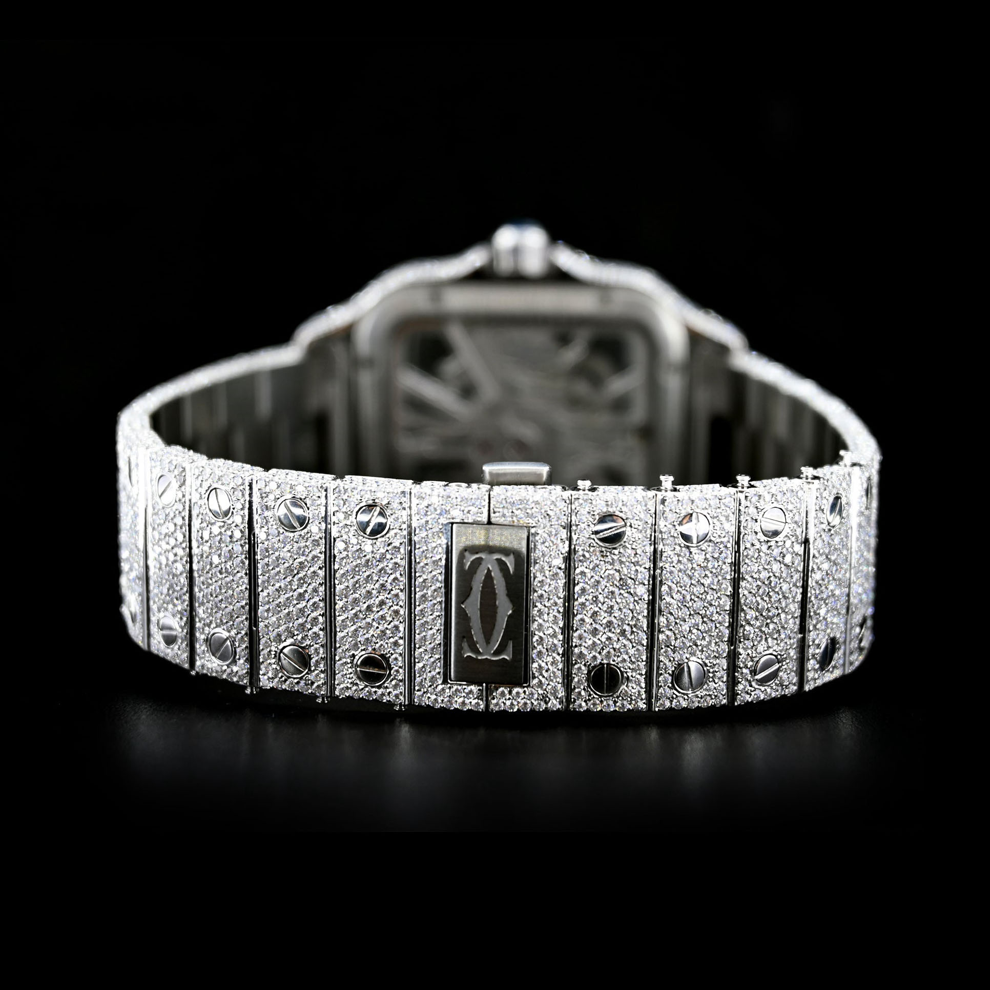 Cartier Santos De Cartier Skeleton Hand Wound Movement Custom Pave Diamond ICED OUT 02
