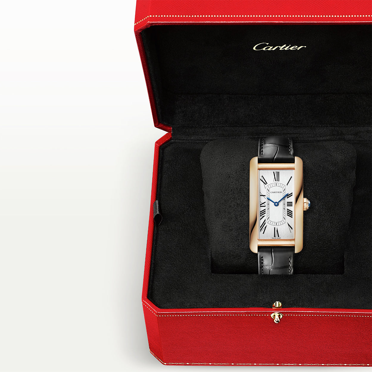 Cartier Tank Americaine Large 18ct Rose Gold Leather Strap Watch