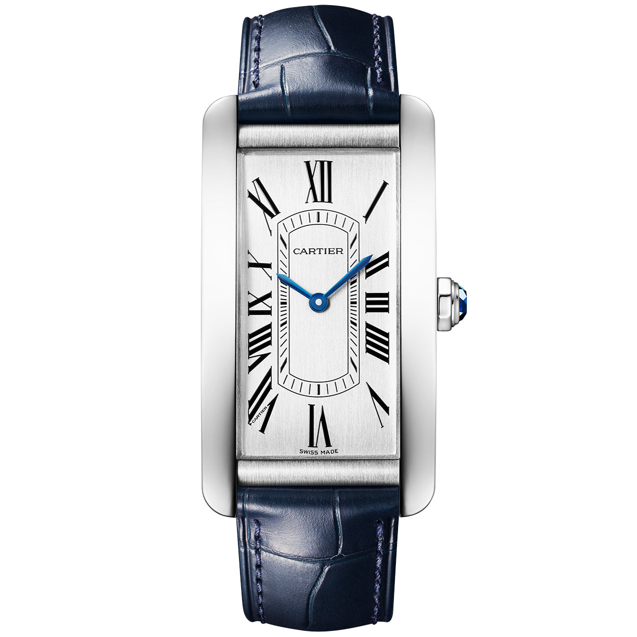 Cartier Tank Americaine Large Steel Automatic Leather Strap Watch