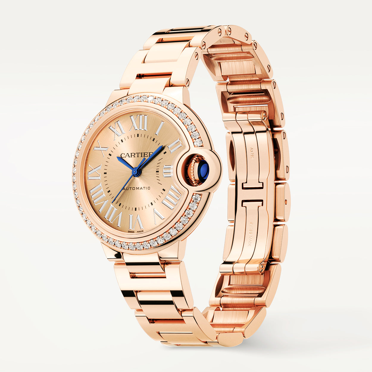 Ballon Bleu de Cartier 33mm 18ct Rose Gold Dial Diamond Set Bracelet Watch
