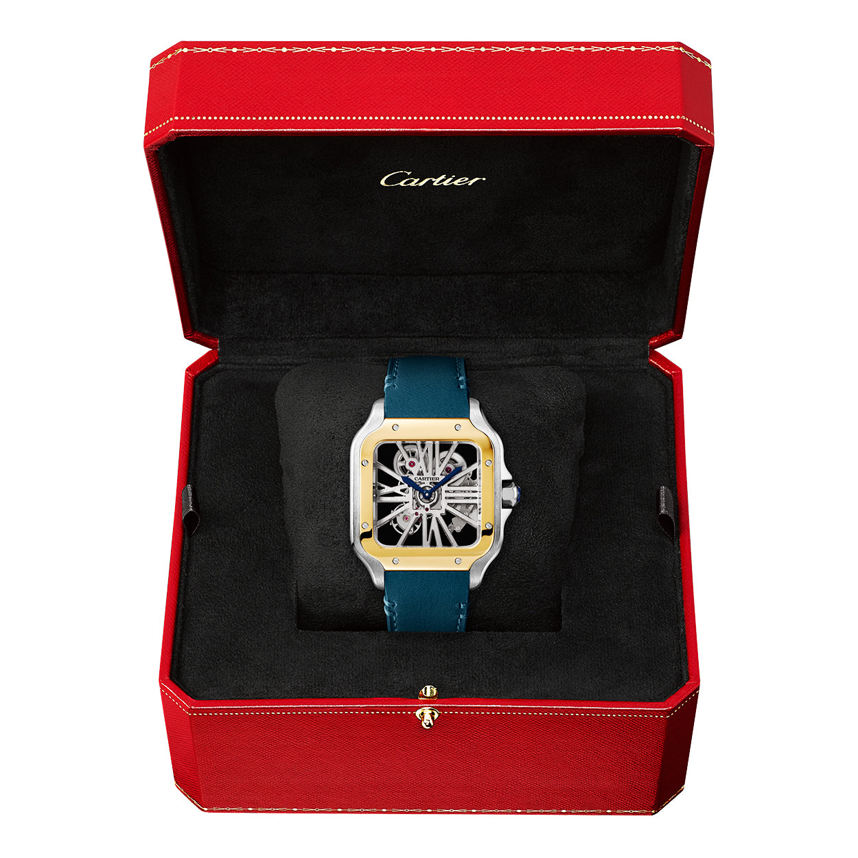 Santos de Cartier Large Skeleton Steel 18ct Yellow Gold Strap Watch