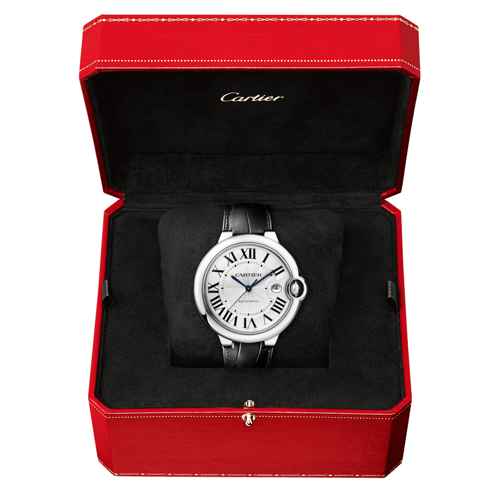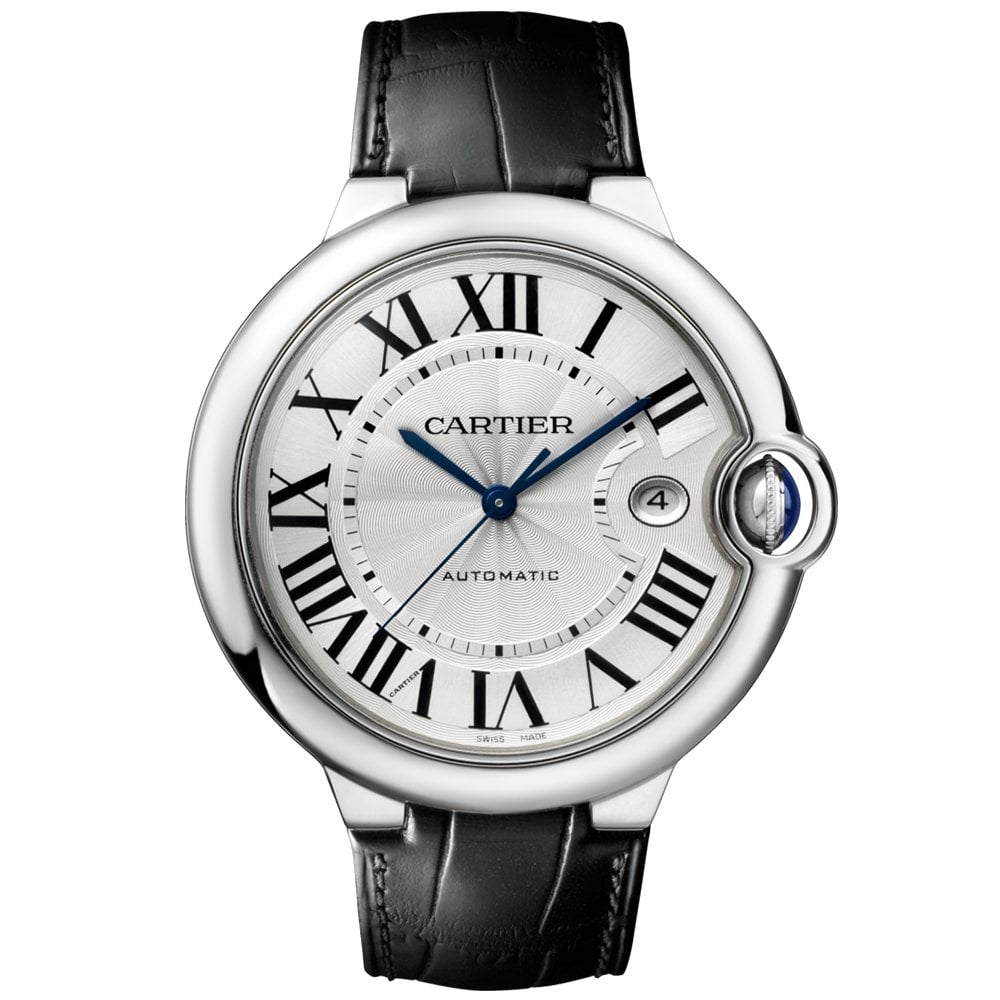 Cartier Ballon Bleu 42mm Silver Dial Men's Automatic Leather Strap Watch