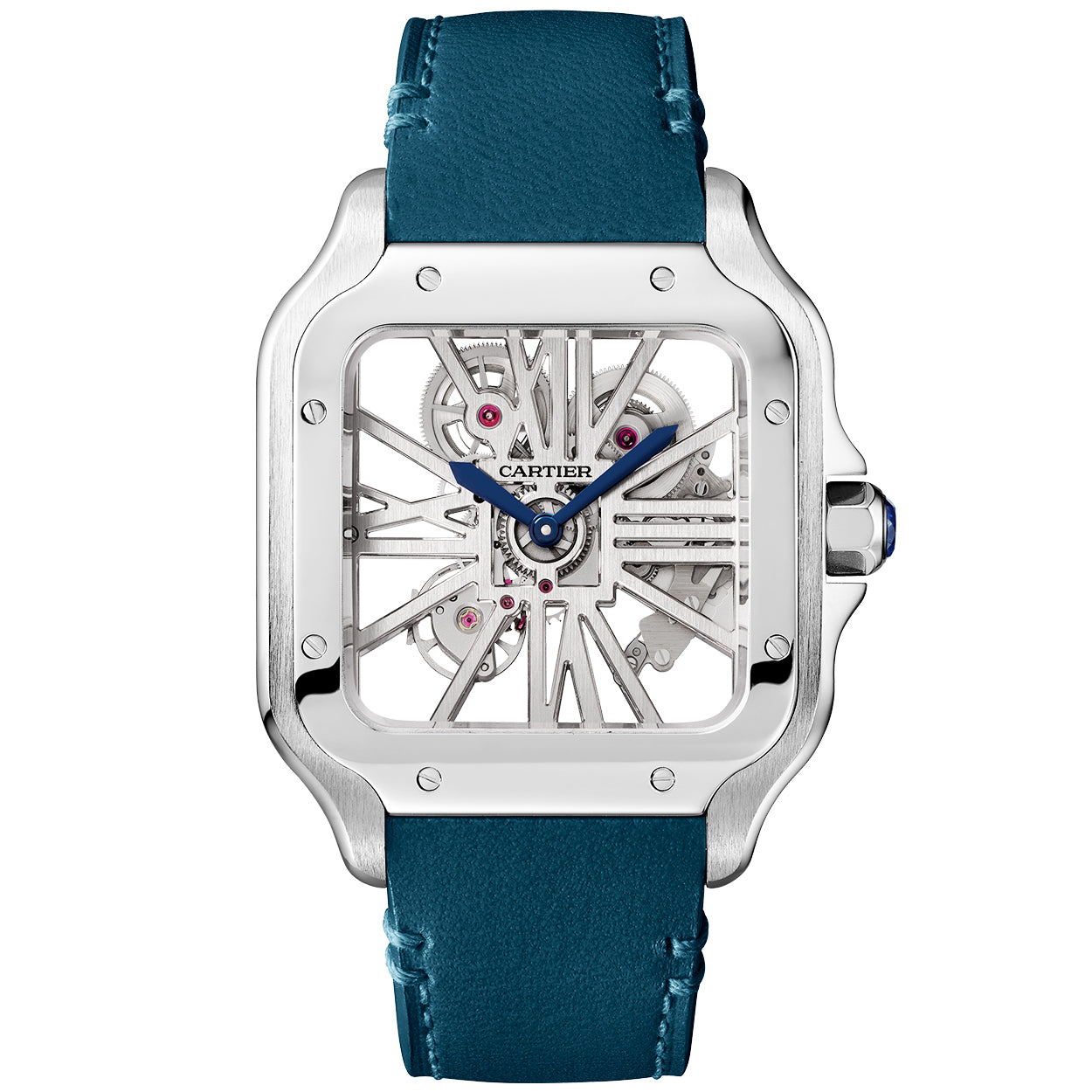 Santos de Cartier Large Skeleton Steel Blue Strap Watch