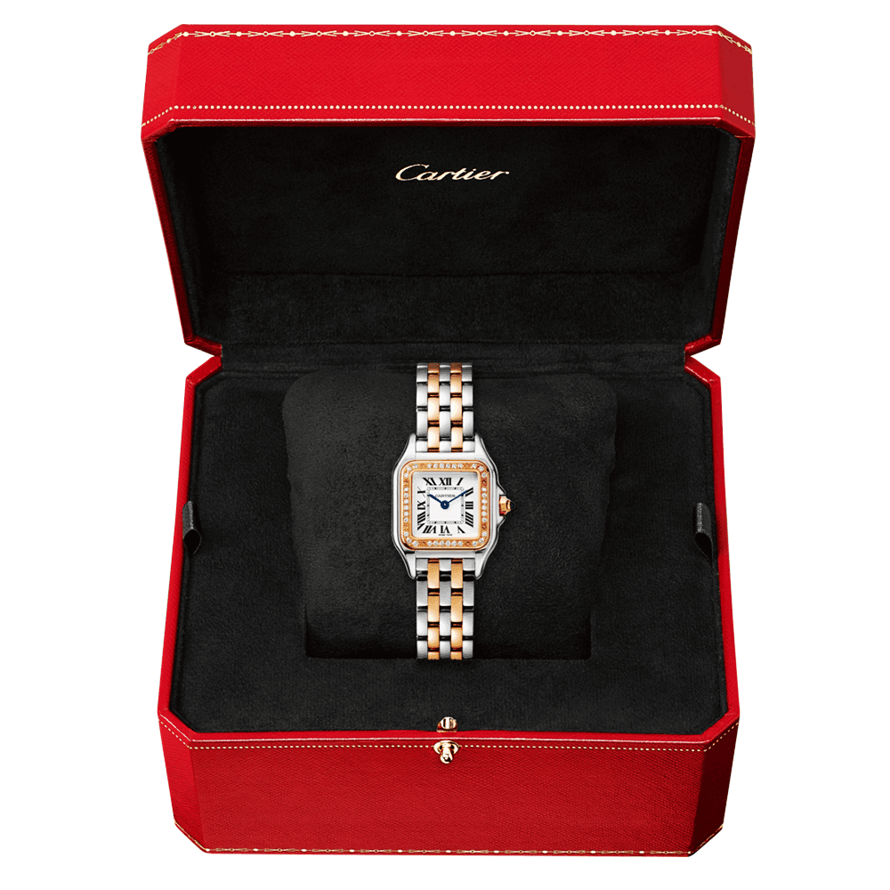 Panthere de Cartier Small 18ct Rose Gold Steel Diamond Bezel Watch