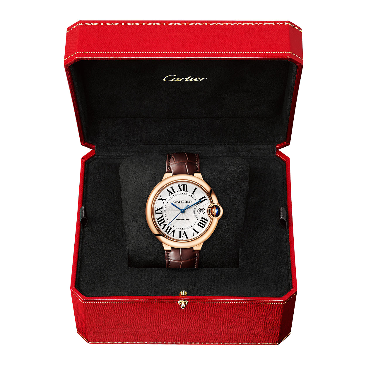 Cartier Ballon Bleu 18ct Rose Gold 42mm Automatic Leather Strap Watch