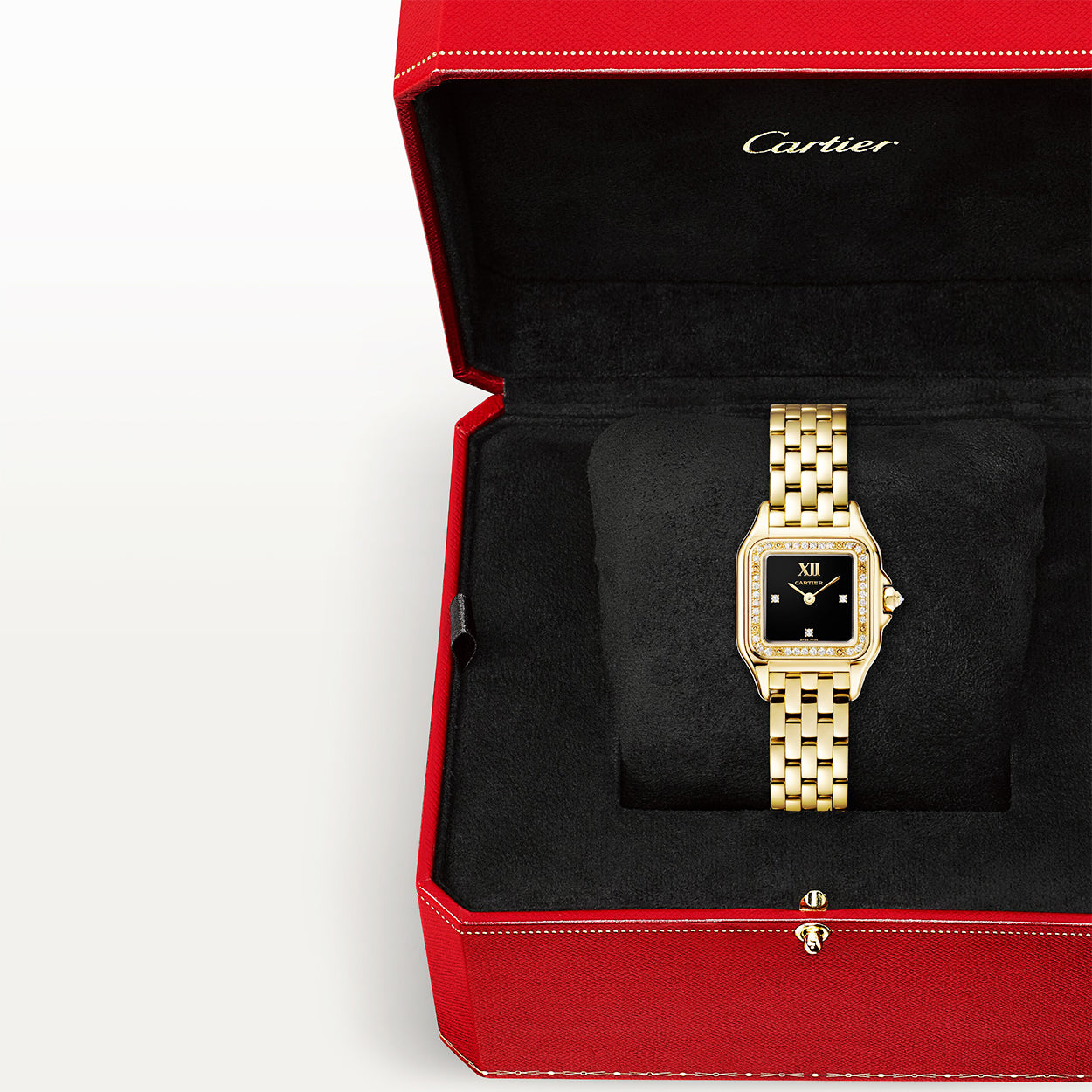Panthere de Cartier Small 18ct Yellow Gold Diamond Set Black Dial Watch