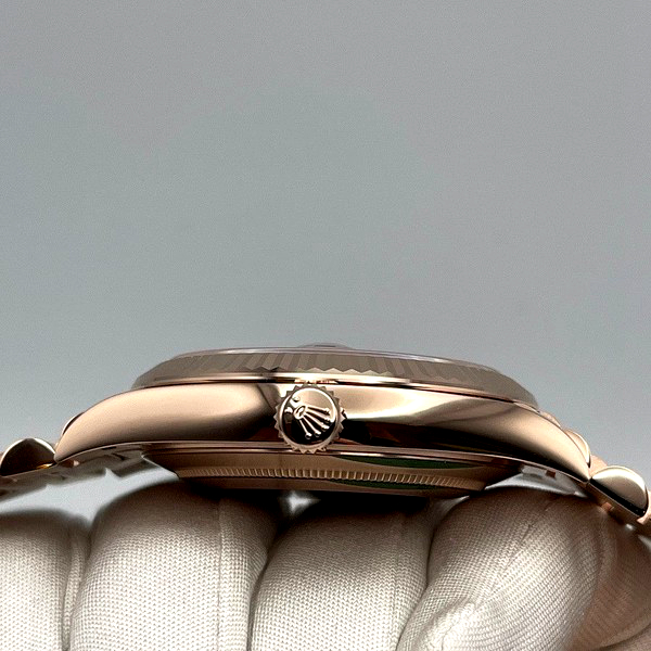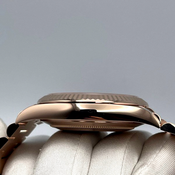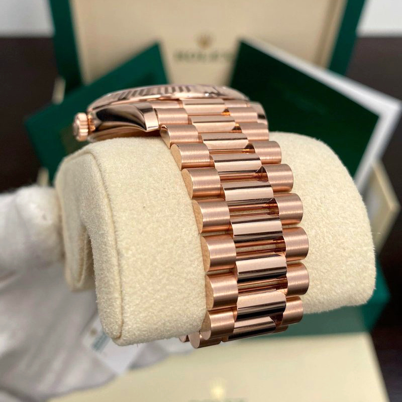 The Rolex fluted bezel is a mark of distinction. Originally, the fluting of the Oyster bezel had a functional purpose: it served to screw the bezel onto the case helping to ensure the waterproofness of the watch. It was therefore identical to the fluting on the case back, which was also screwed onto the case for waterproofness, using specific Rolex tools. Over time, the fluting became an aesthetic element, a genuine Rolex signature feature. Today the fluted bezel is a mark of distinction, in gold on this Day-Date 40.