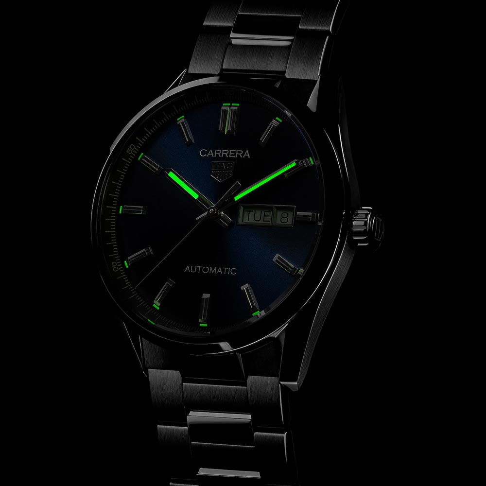 This TAG Heuer Carrera exudes class and sophistication with its blue sunray brushed dial and its refined allure. The craftsmanship is apparent in its elegant updated case and dial details. making it an ideal watch for any occasion.