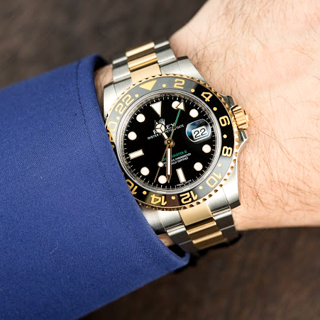 Bold, gold Arabic numerals on the ceramic rotatable bezel correspond with a fourth hand that circles the dial once every 24 hours, making it ideal for tracking a second time zone or for distinguishing between day and night hours. The dial features sleek white indices for 12-hour time and a convenient date window. The GMT-Master collection stands out from other Rolex options with its ability to show time in multiple time zones simultaneously. If you often travel for business or regularly video conference with your colleagues across the world, you can know what time it is for them with a quick glance at your wrist.