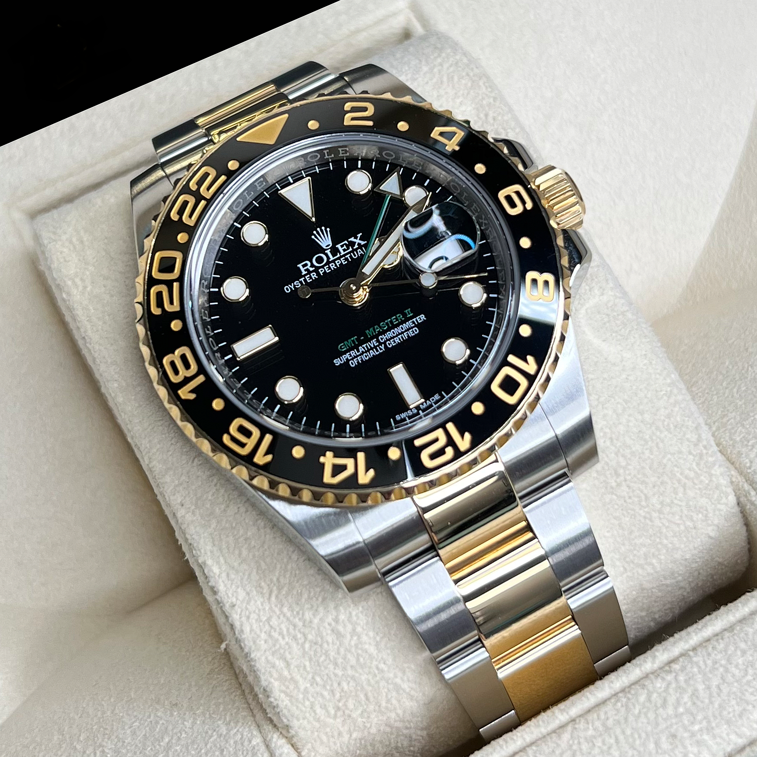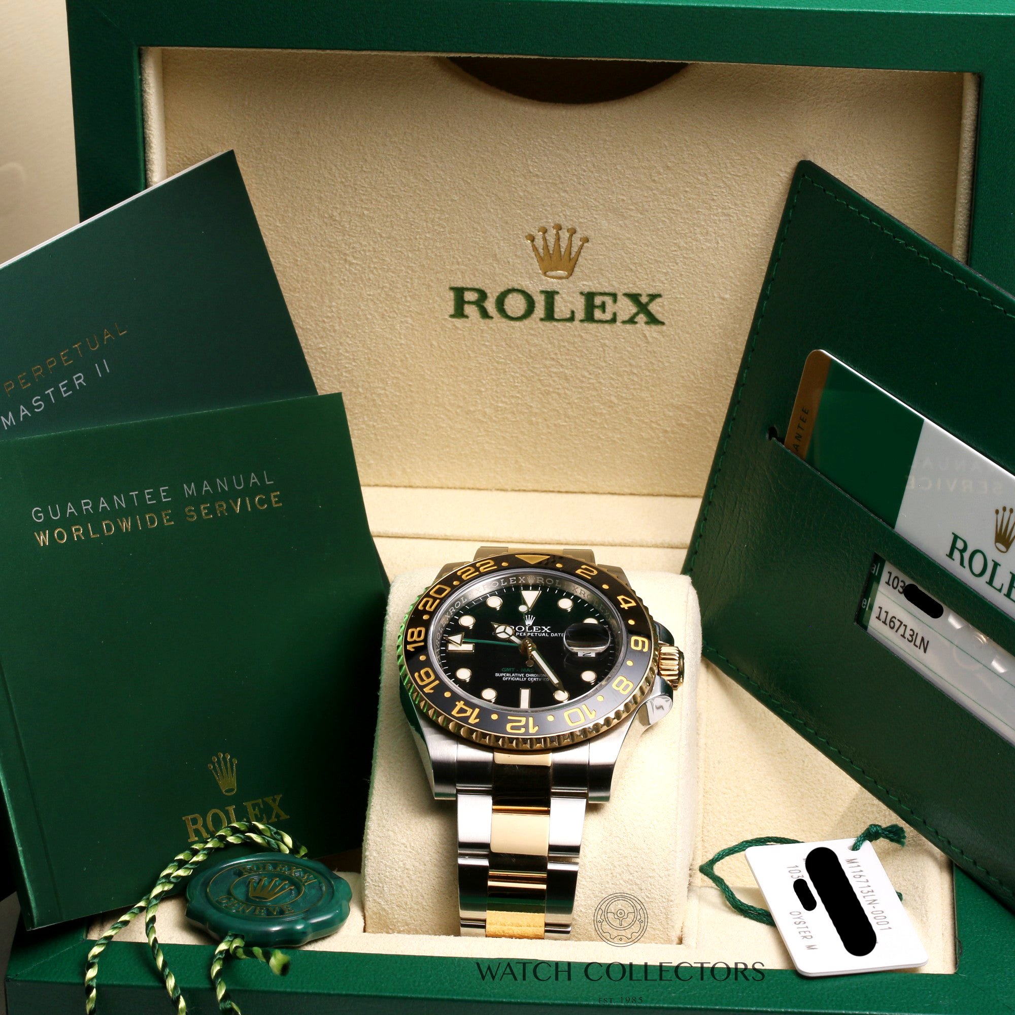 Rolex GMT Master II 116713LN Steel Gold Black Dial