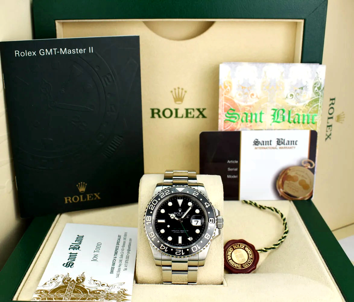 • Rolex GMT Master II Black Green 40mm RANDOM SERIAL Steel Ceramic 116710 LN Watch