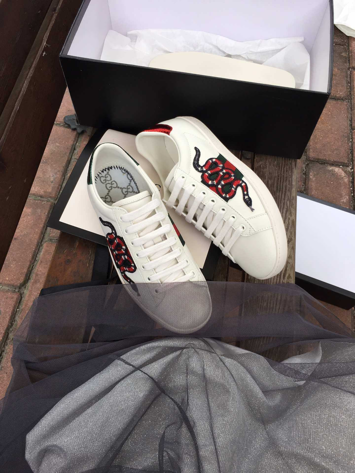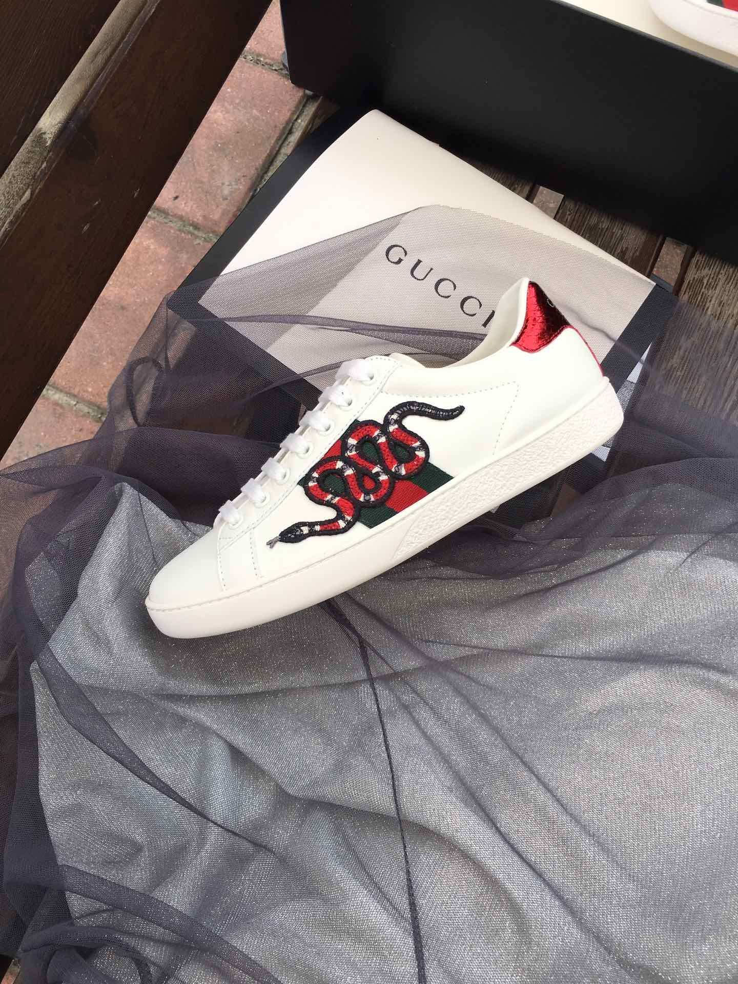 Alessandro Michele presents the Ace low-top with an embroidered Kingsnake appliqué set against the Web.