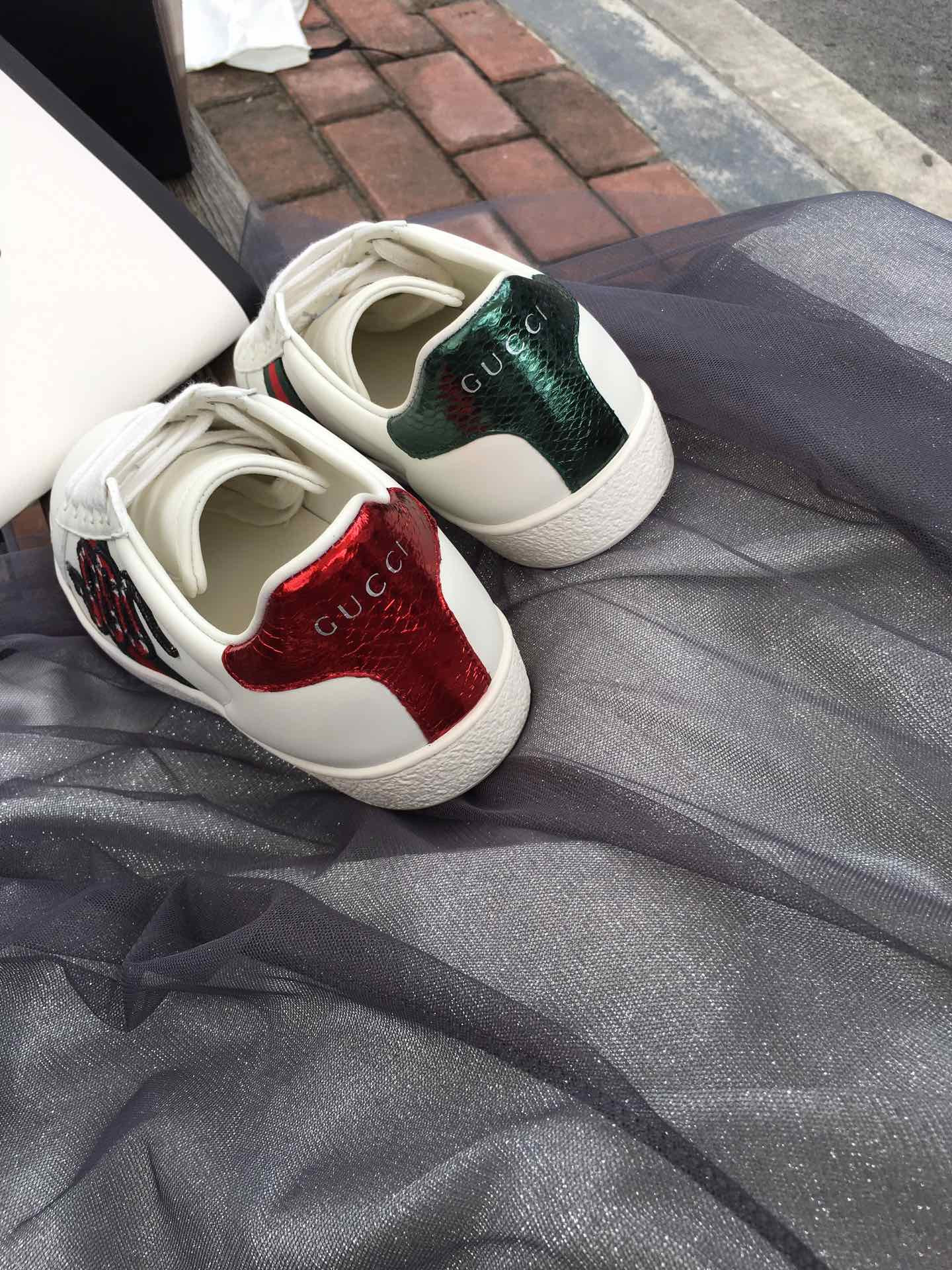- Red ayers snake detail on the back of one shoe and green ayers snake detail on the back of the other shoe