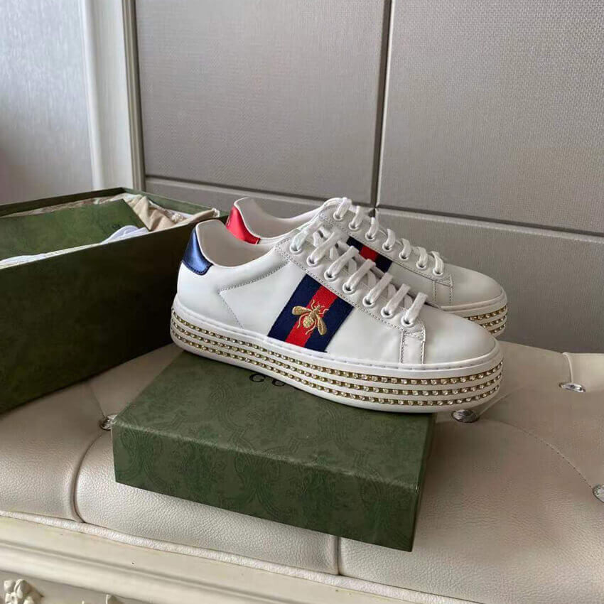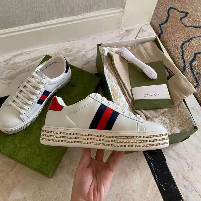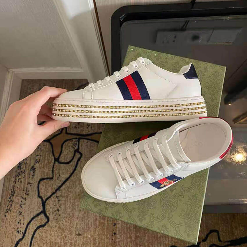 The retro inspired design of the Ace sneaker is set on a platform rubber sole embellished with rows of crystals.