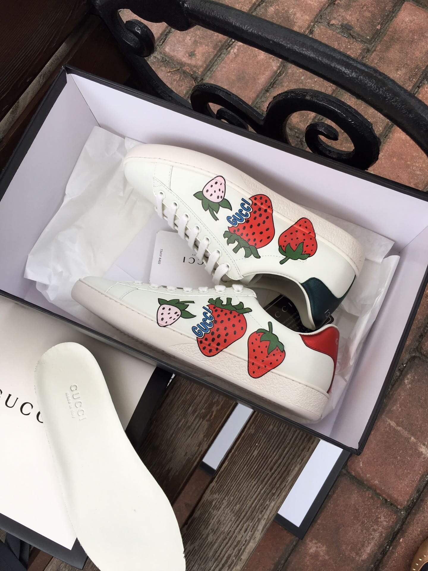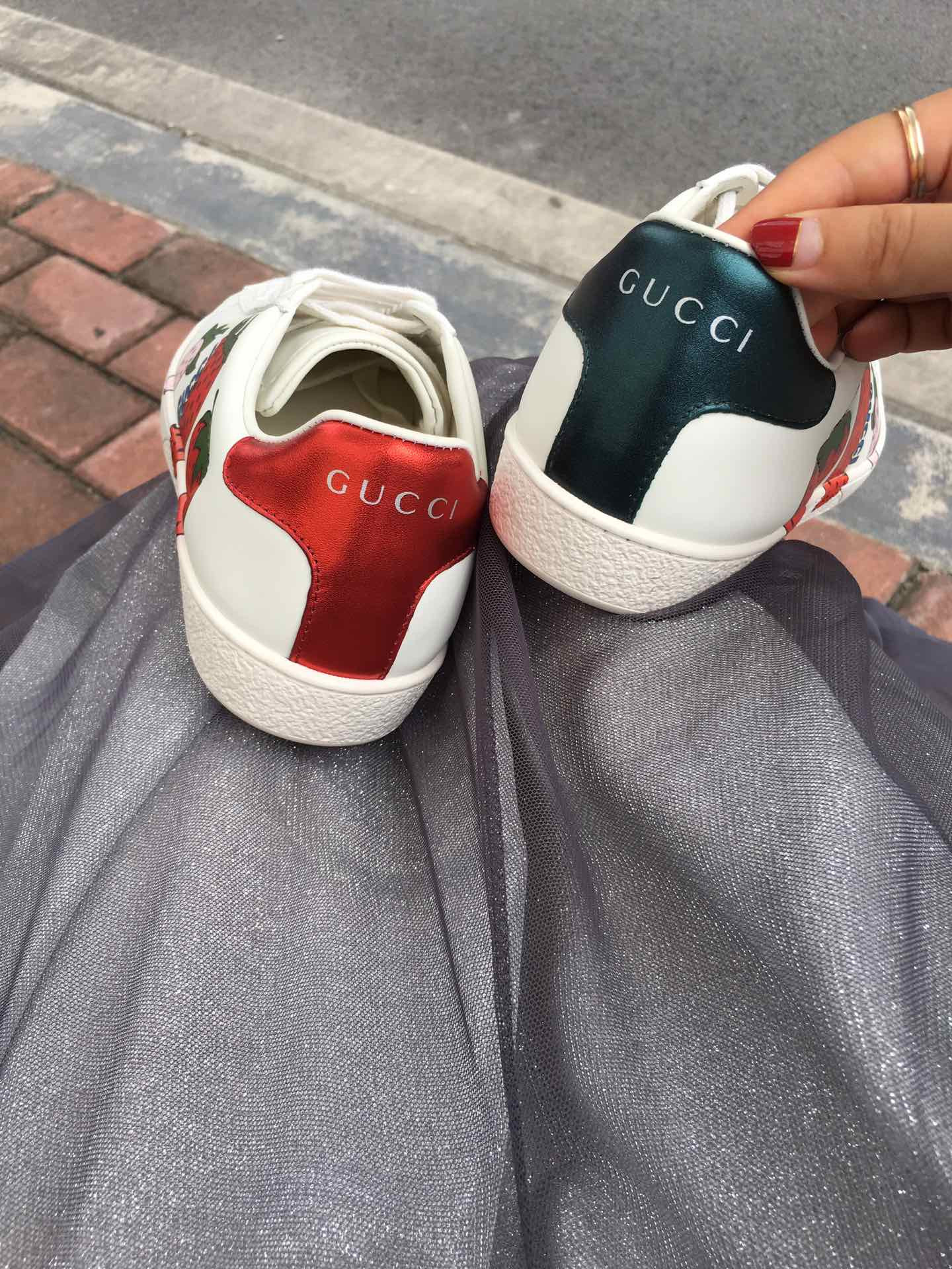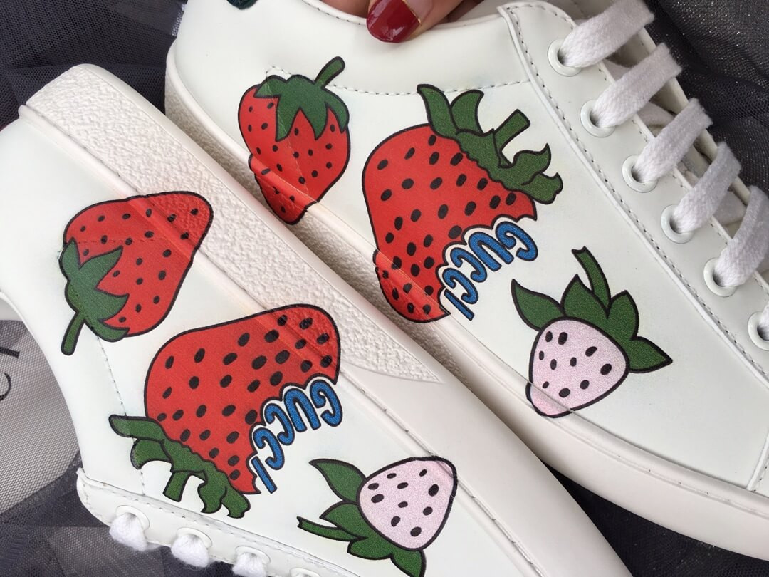 - Red ayers snake detail on the back of one shoe and blue ayers snake detail on the back of the other shoe