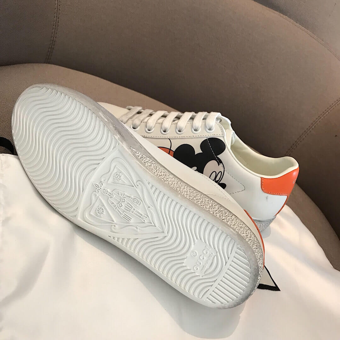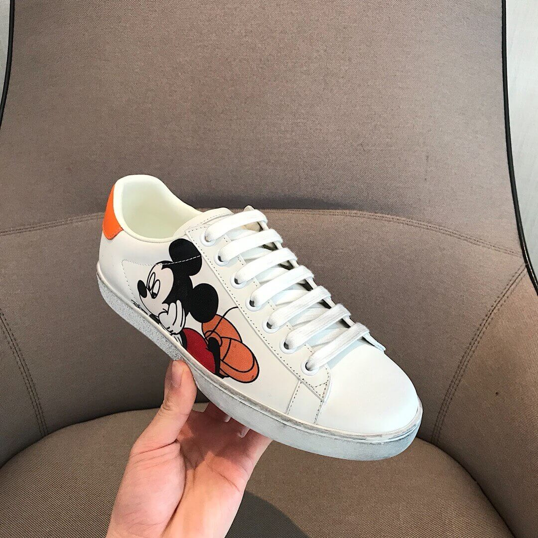 Mickey Mouse’s playful image defines this leather men's sneaker. In celebration of the Lunar New Year, Disney’s legendary character appears throughout Gucci’s ready-to-wear and accessories for the Cruise 2020 collection, displayed as colorful prints, embroidered patches or jacquard motifs.