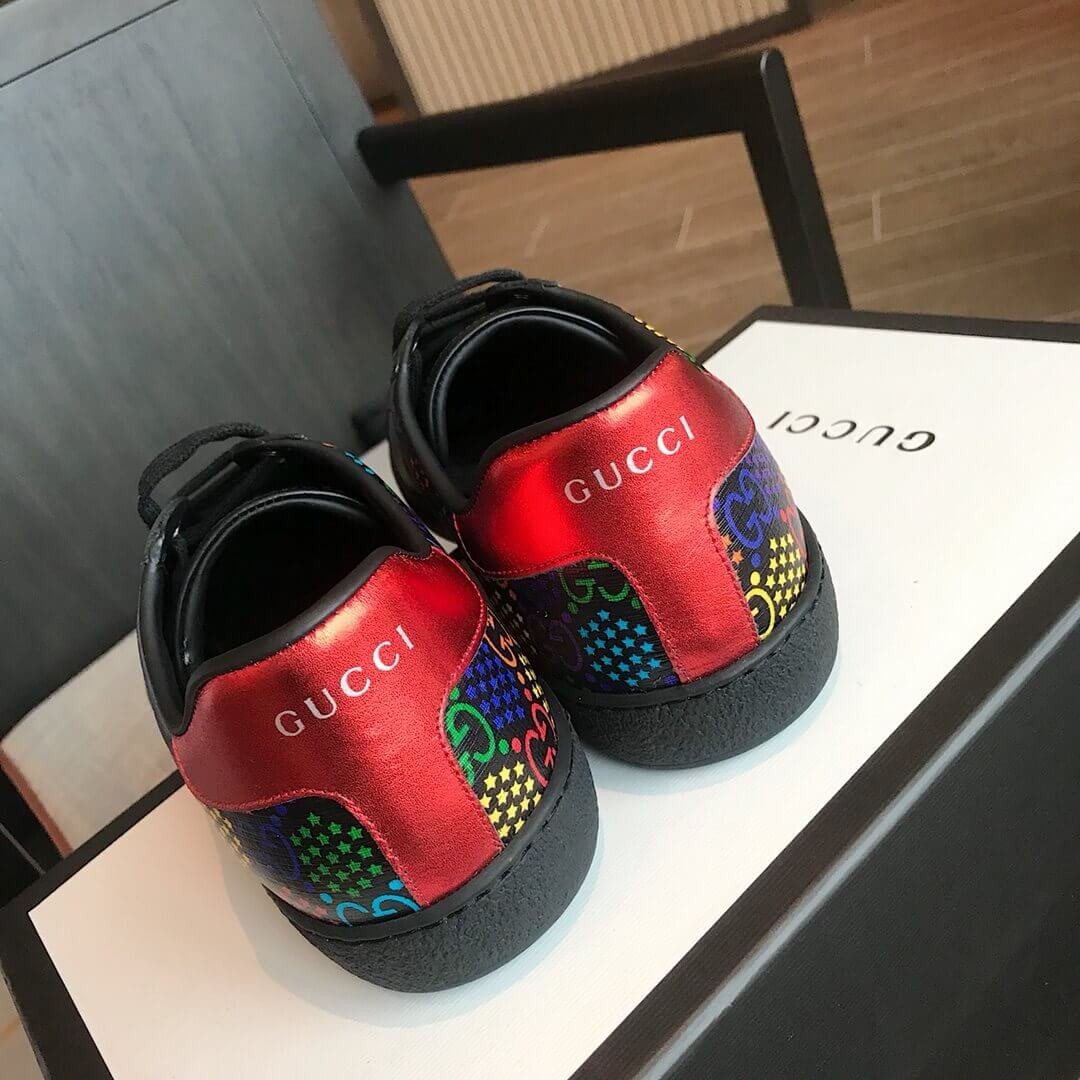 For Cruise 2020, the House's classic sneaker is defined by a playful take on the historicGG pattern. Seen throughout ready-to-wear and accessories, the monogram motif is intermixed with colorful hued stars. The play on the monogram canvas was seen on a series of runway looks.