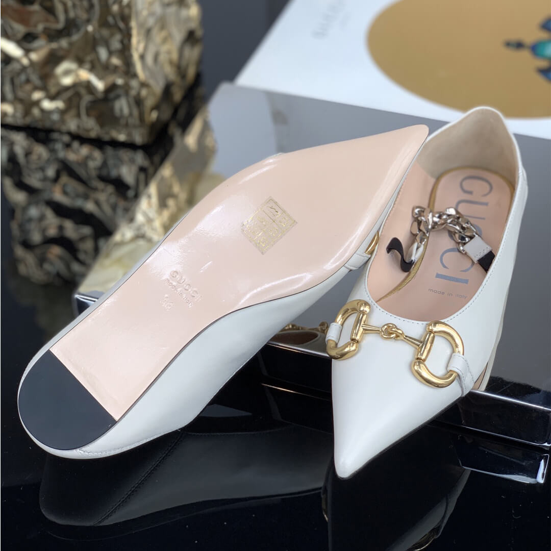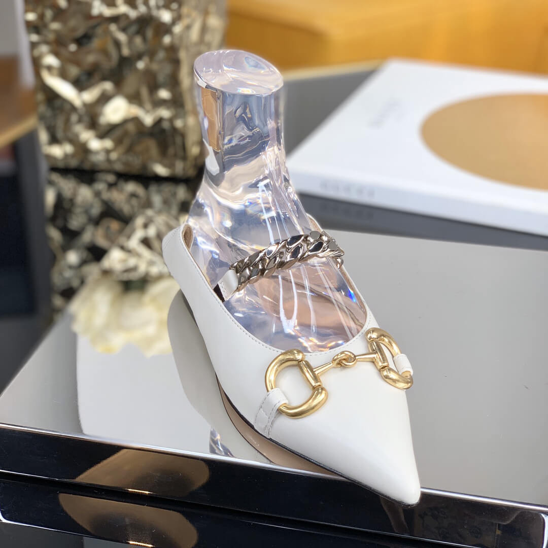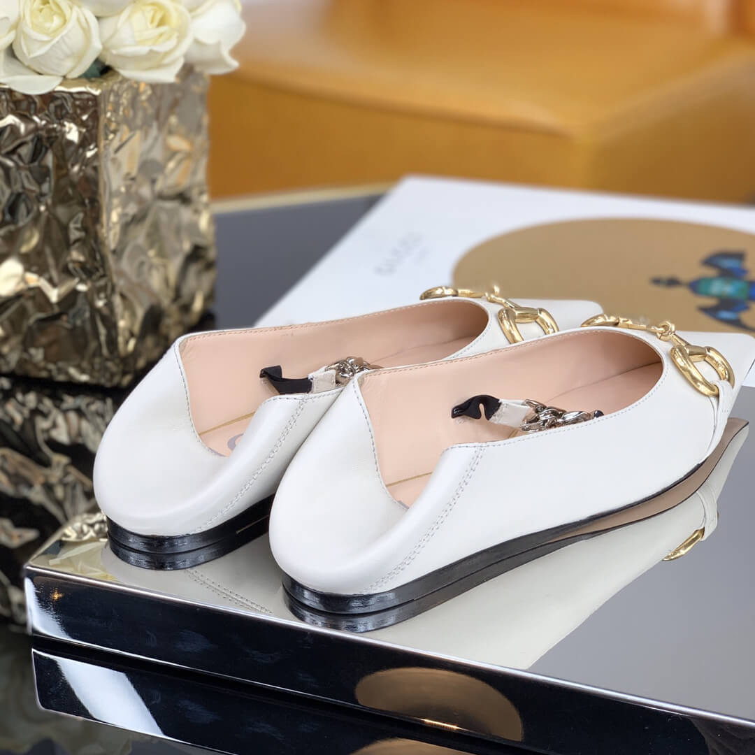 Gucci Leather Ballet Flat With Horsebit 621161 White