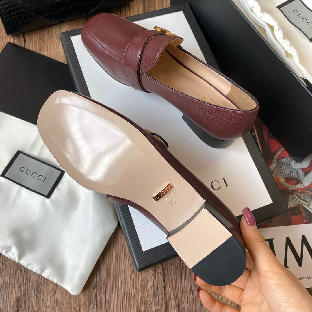 Gucci Leather Loafer with Double G 602496 Burgundy