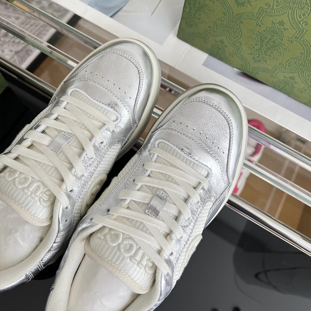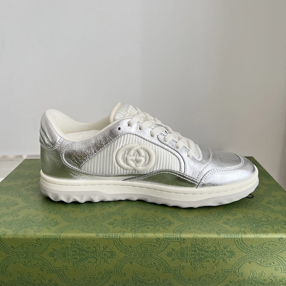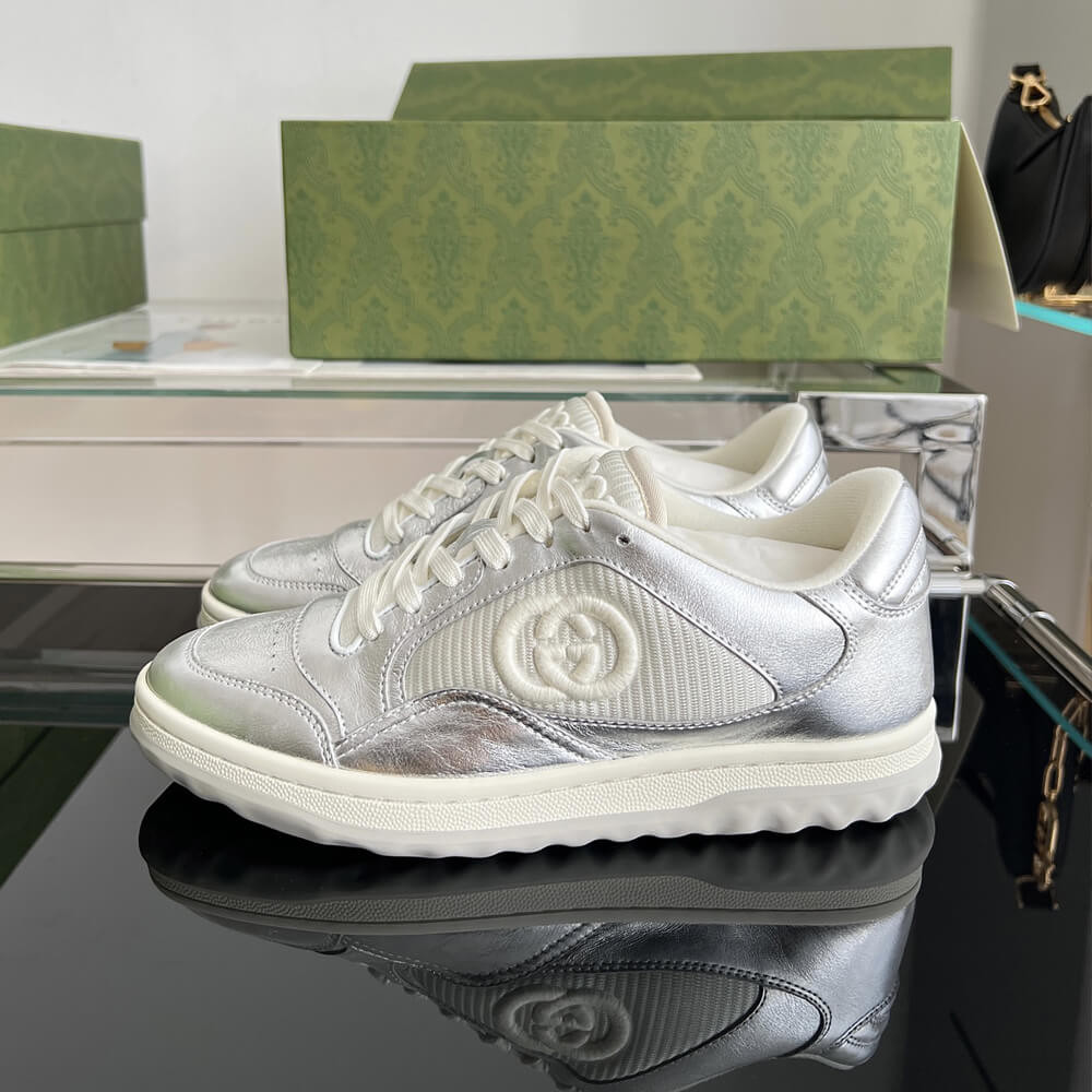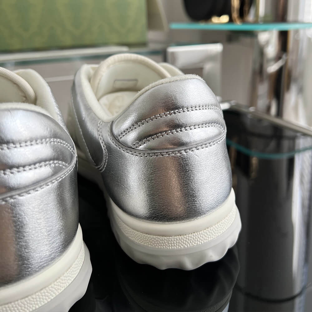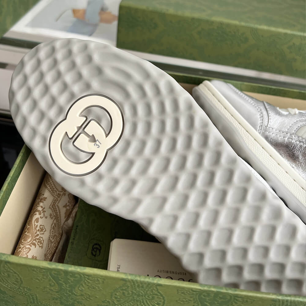 A discreet Interlocking G speaks to the subtle narrative that runs through the collection. Presented against metallic gold leather, the motif brings the House logo to the fore in this retro-inspired sneaker design.