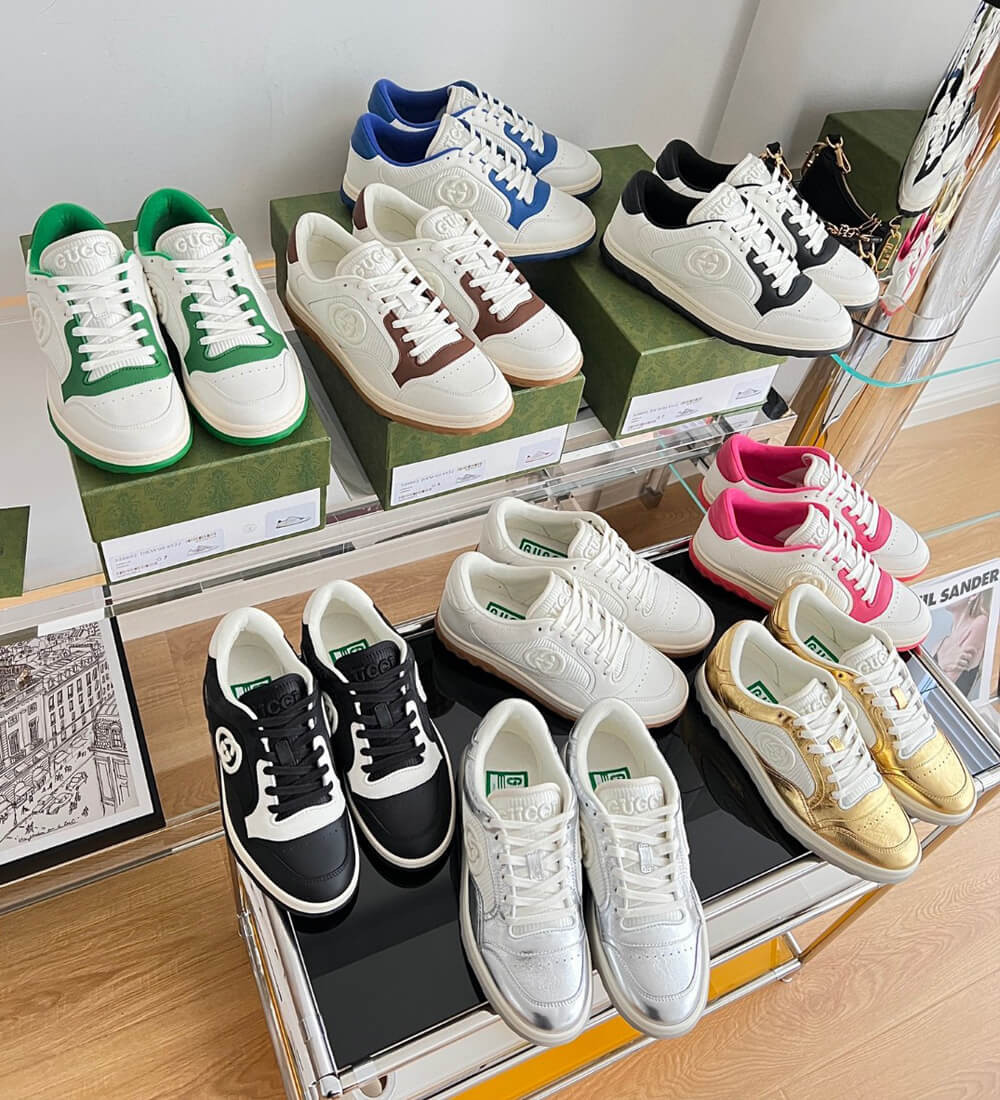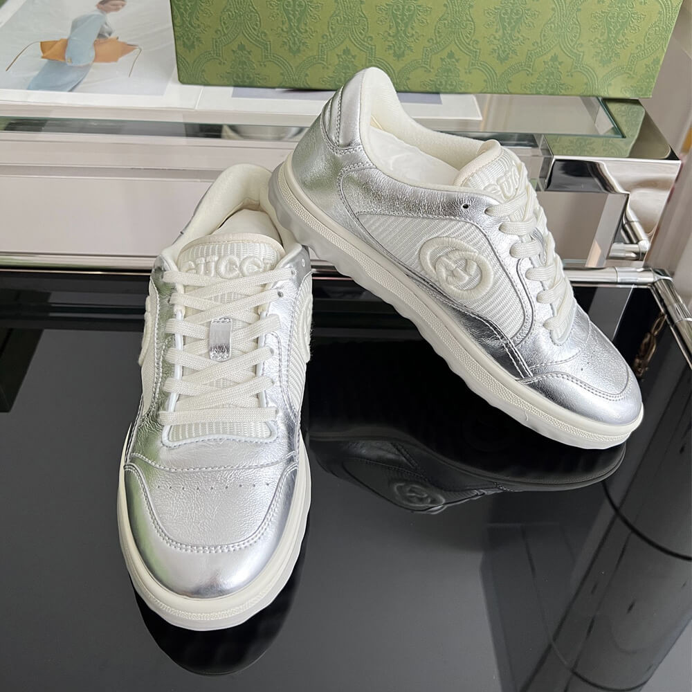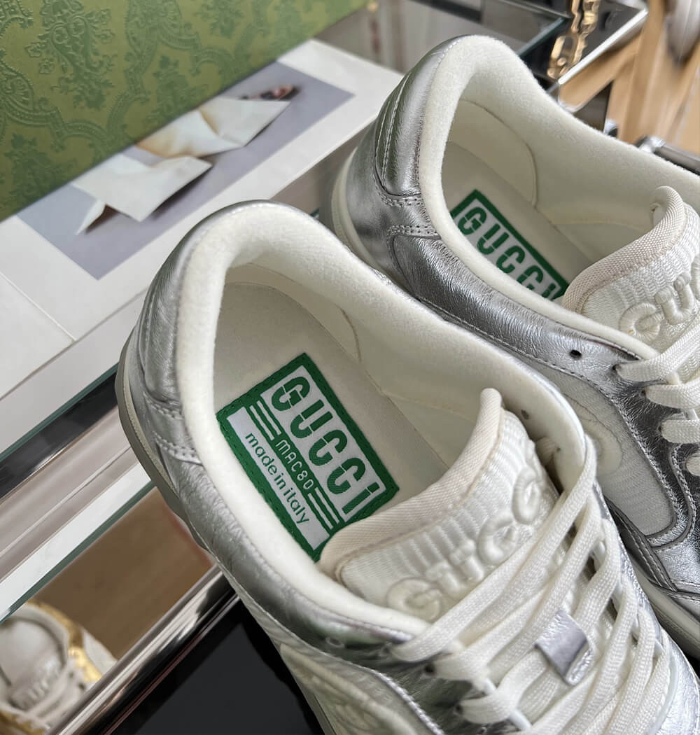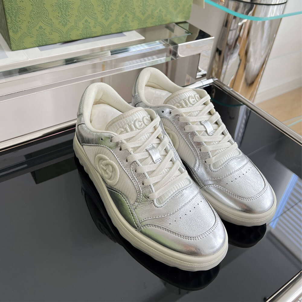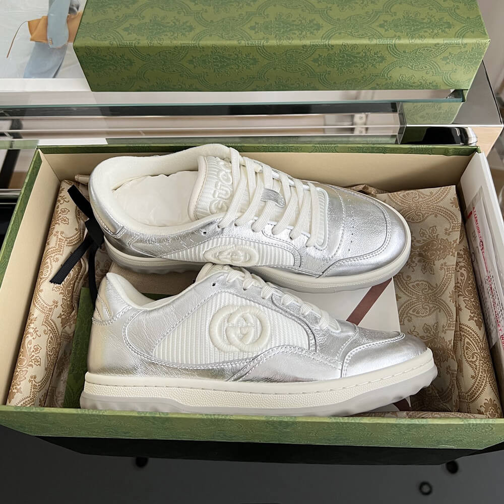 A discreet Interlocking G speaks to the subtle narrative that runs through the collection. Presented against metallic gold leather, the motif brings the House logo to the fore in this retro-inspired sneaker design.