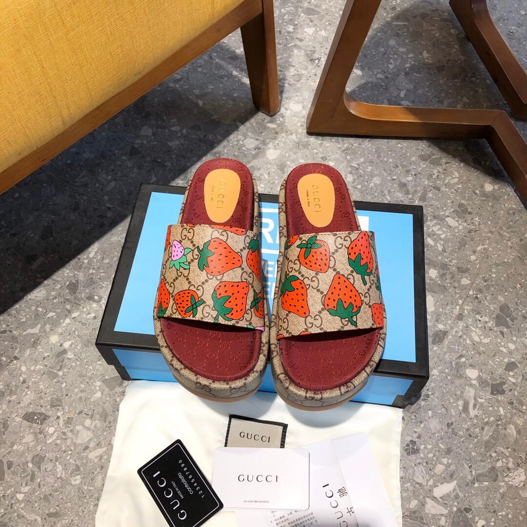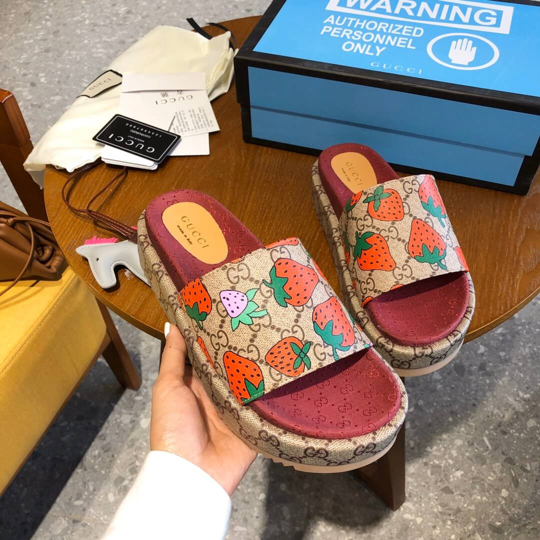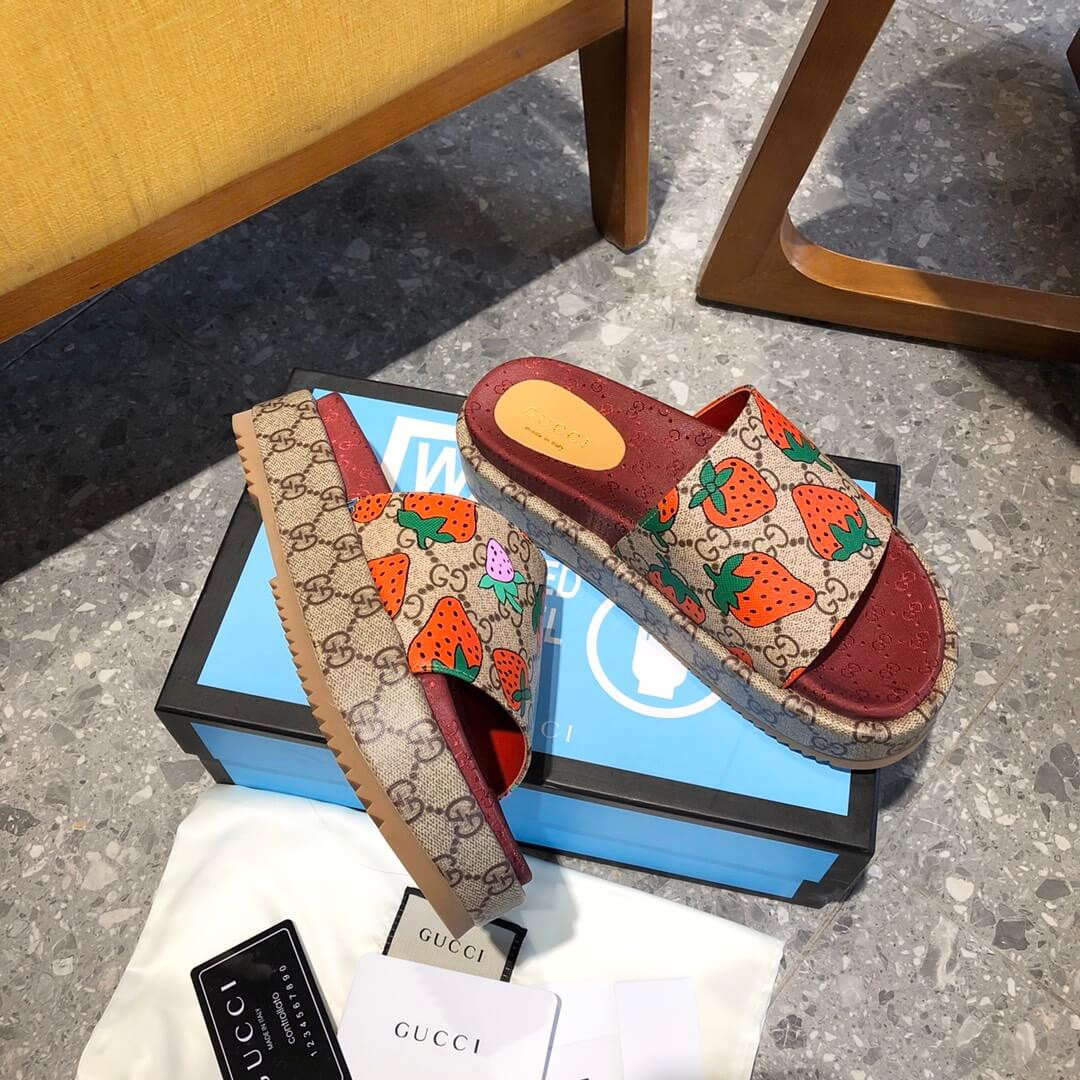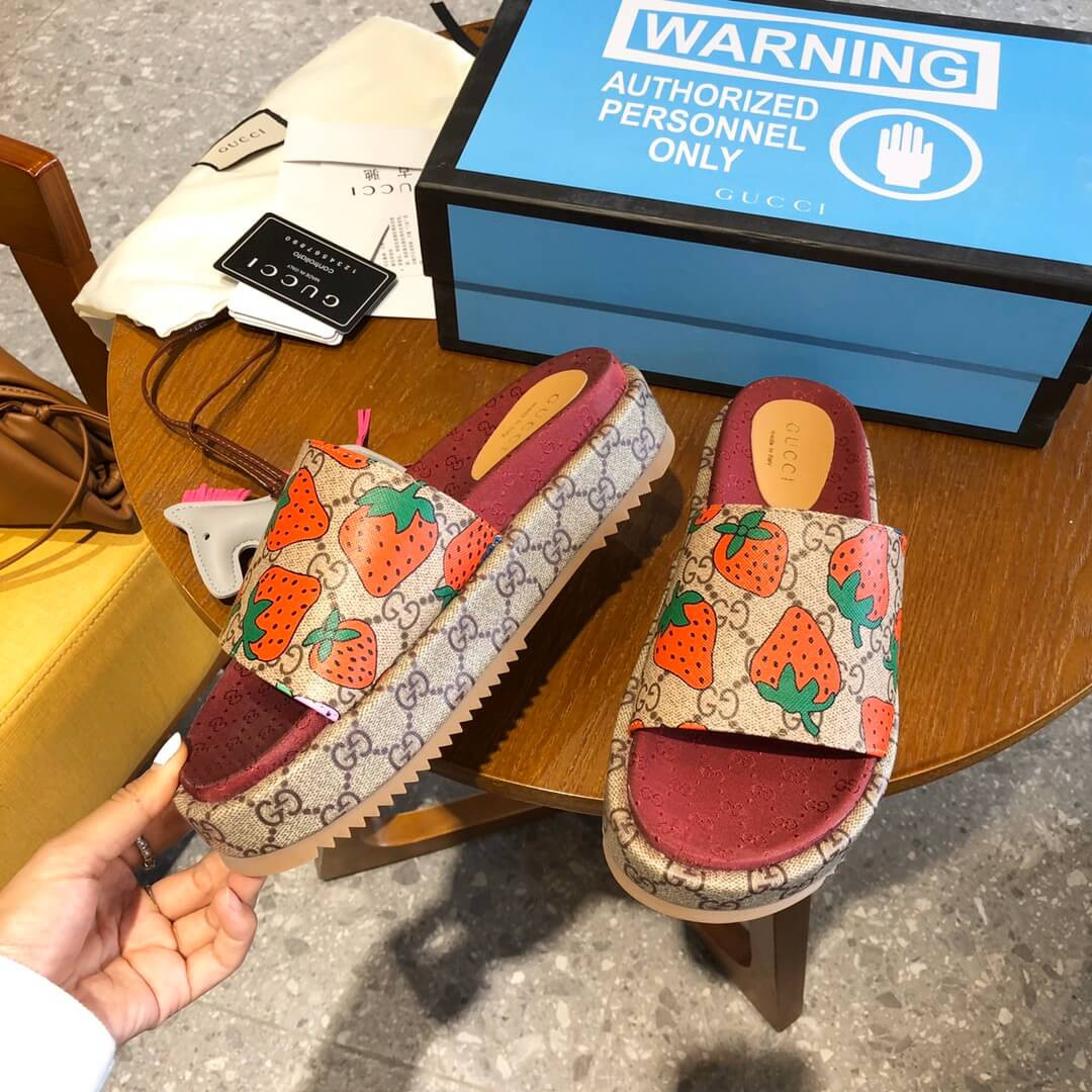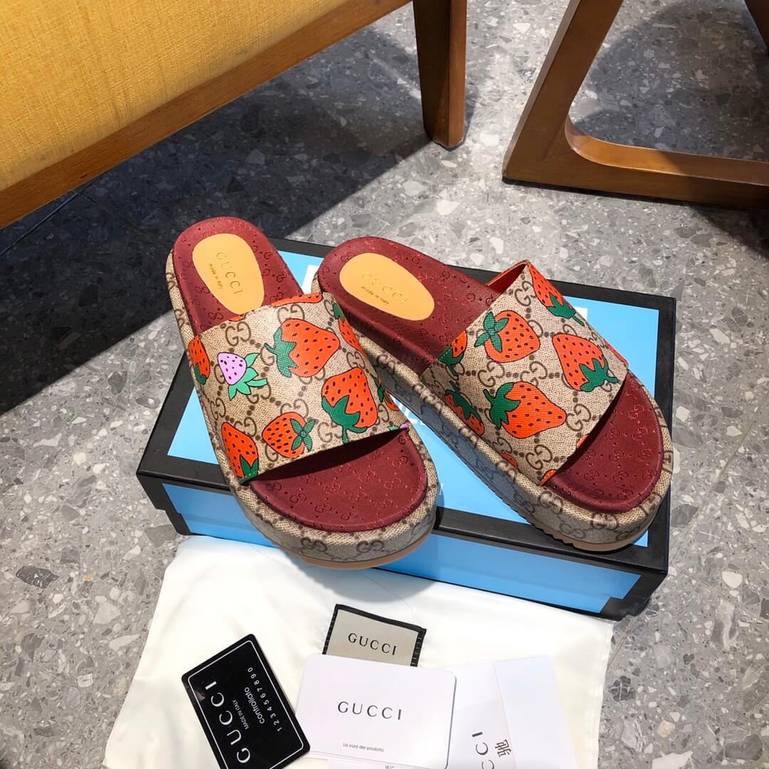 Crafted from Original GG canvas, the slide sandal features a wide strap set on a platform with rubber sole. First used in the 1970s, the GG logo was an evolution of the original Gucci rhombi design from the 1930s, and from then it's been an established symbol of Gucci's heritage.