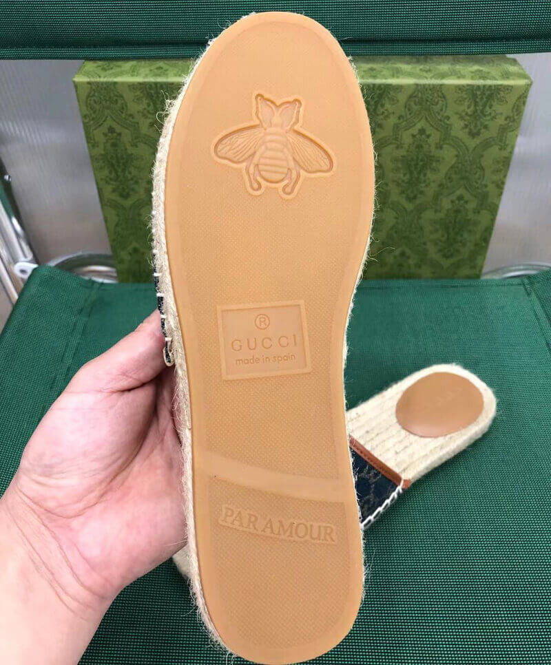 Antiqued '70s-inspired hardware doubles down on the heritage style of this slide sandal crafted from organic logo-jacquard denim with leather trim.