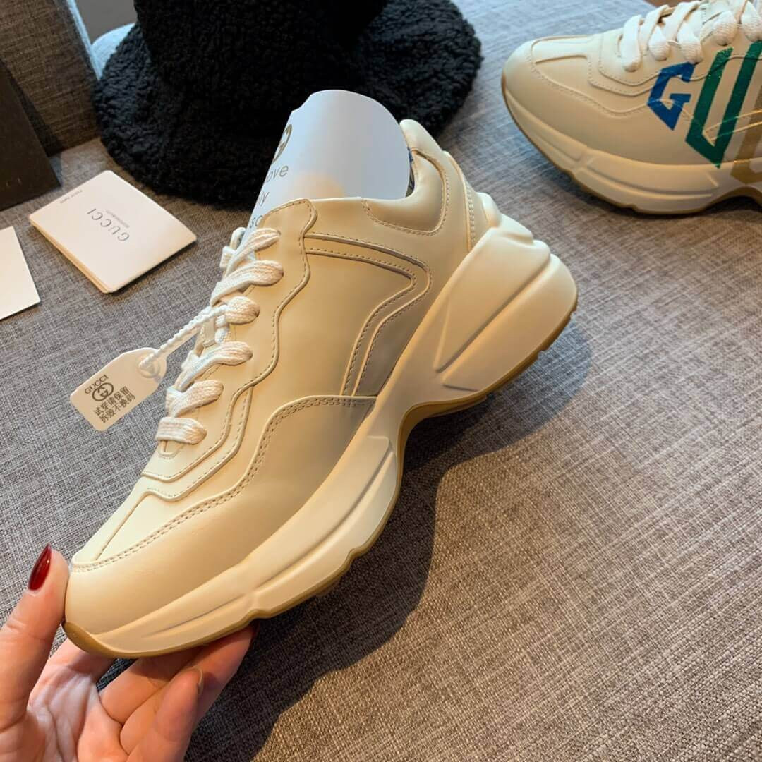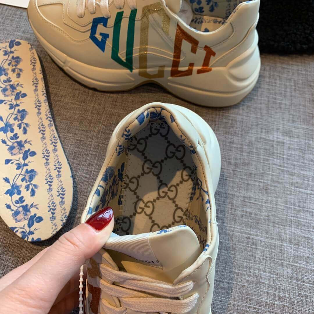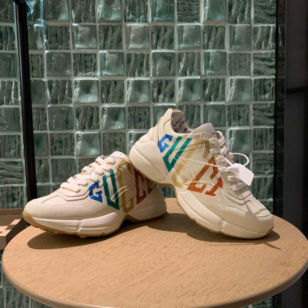 Designed with a thick sole and bulky construction, the leather sneaker is remindful of the old school hip-hop scene and embodiesthe '90s influence pervading the Pre-Fall 2018 collection. Inspired by the tags decorating retro athletic uniforms, the glitterGucci game motif enhances the side of the shoe.