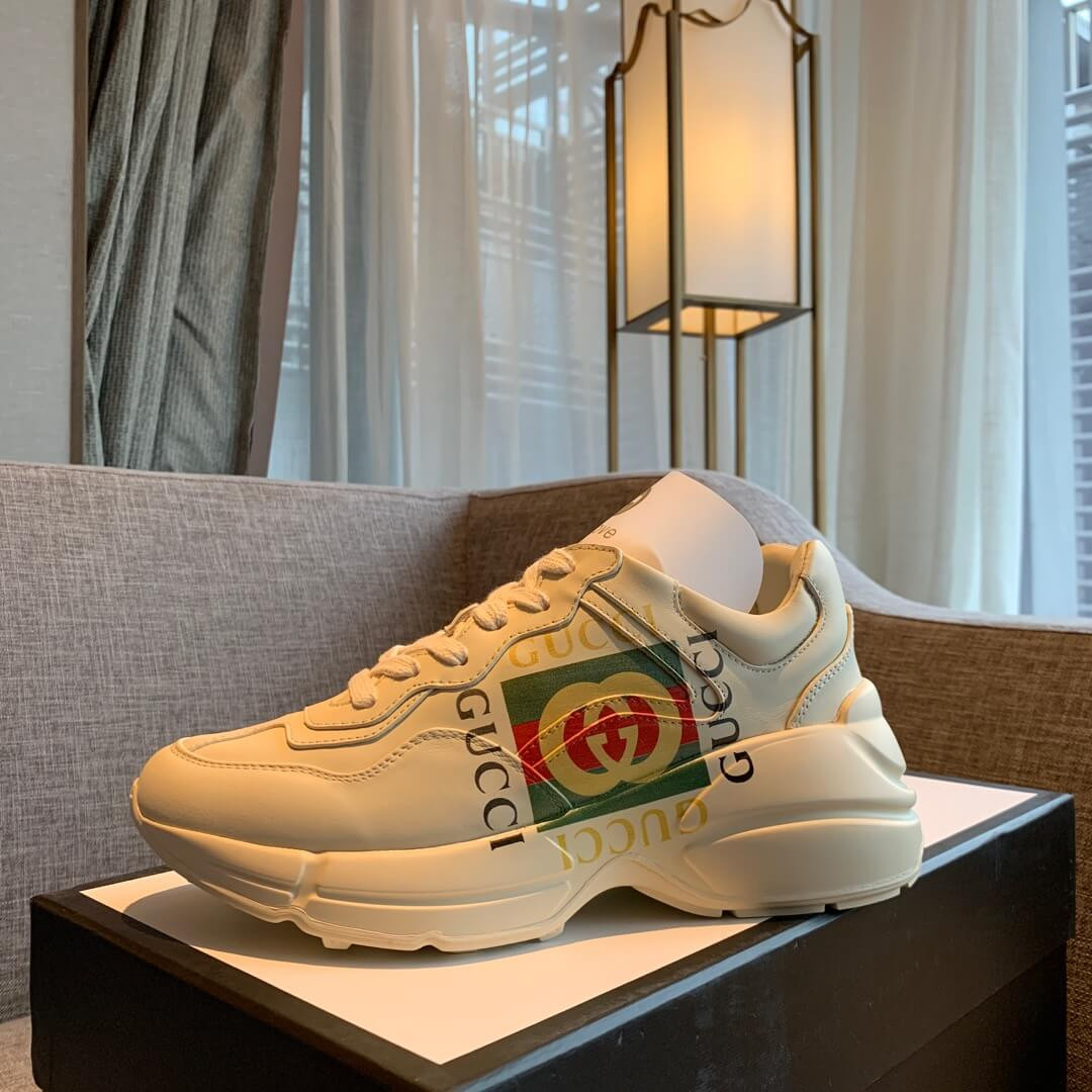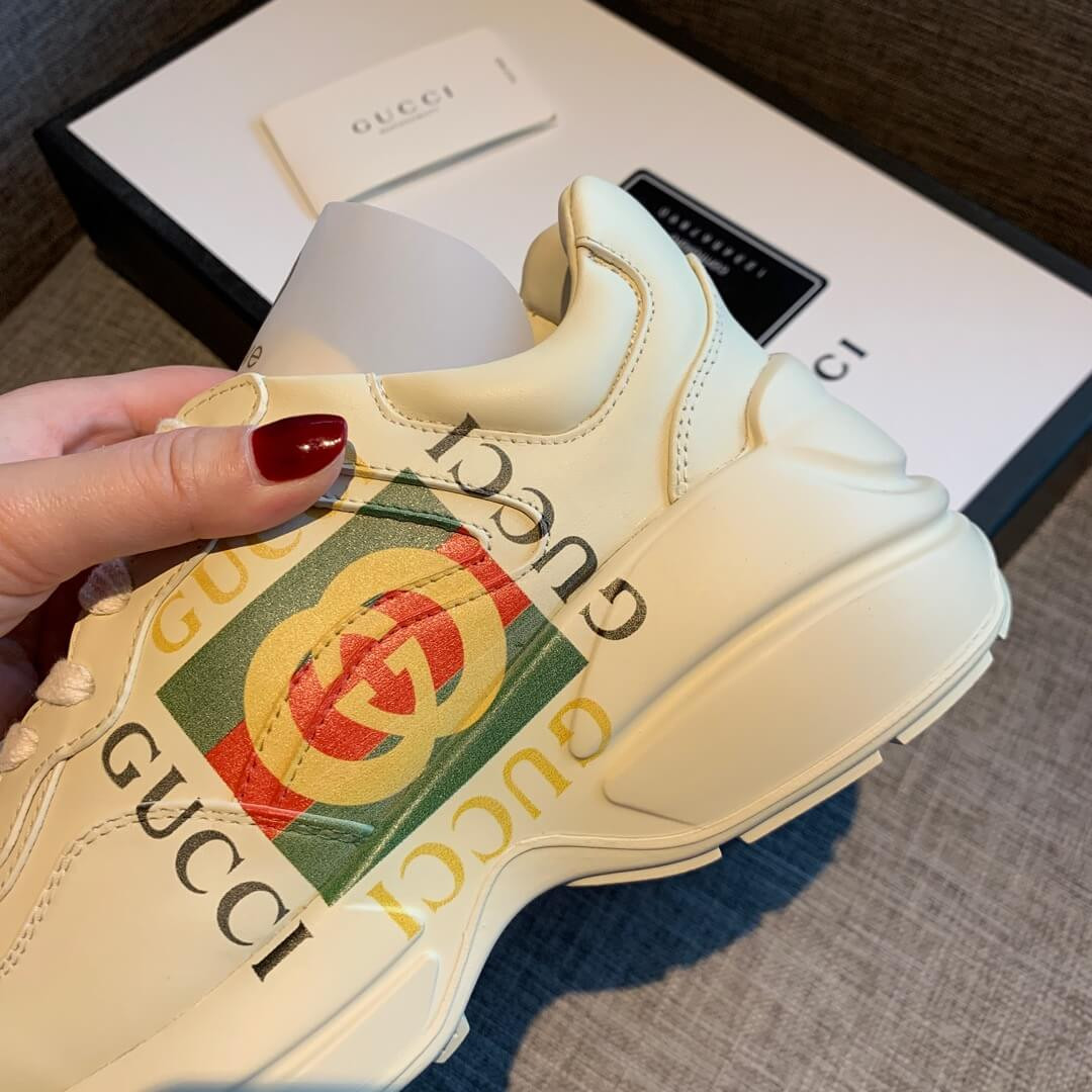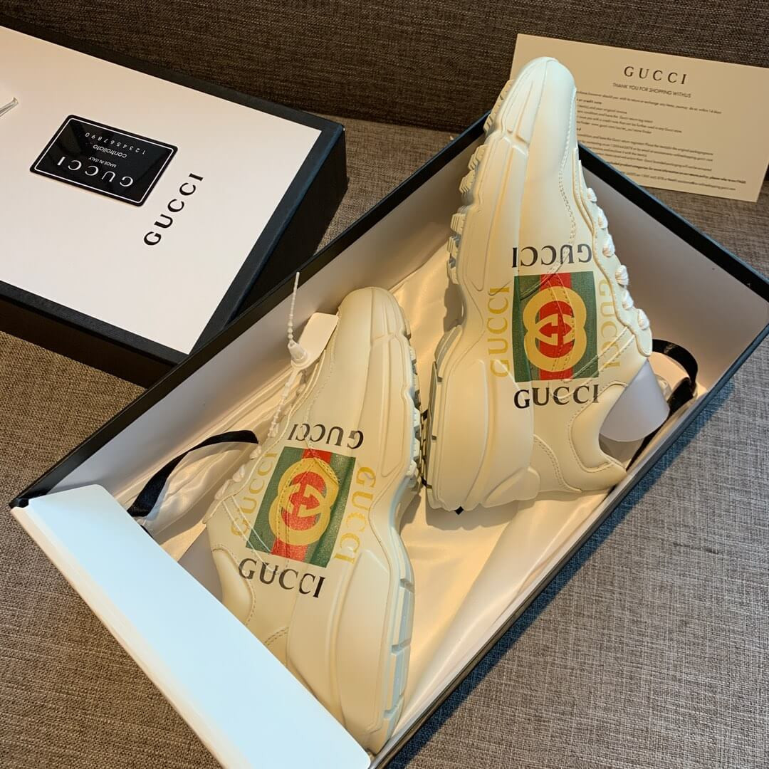 Designed with a thick sole and bulky construction, the sneaker has a retro influence in leather with a vintage Gucci logo inspired by prints from the 1980s.