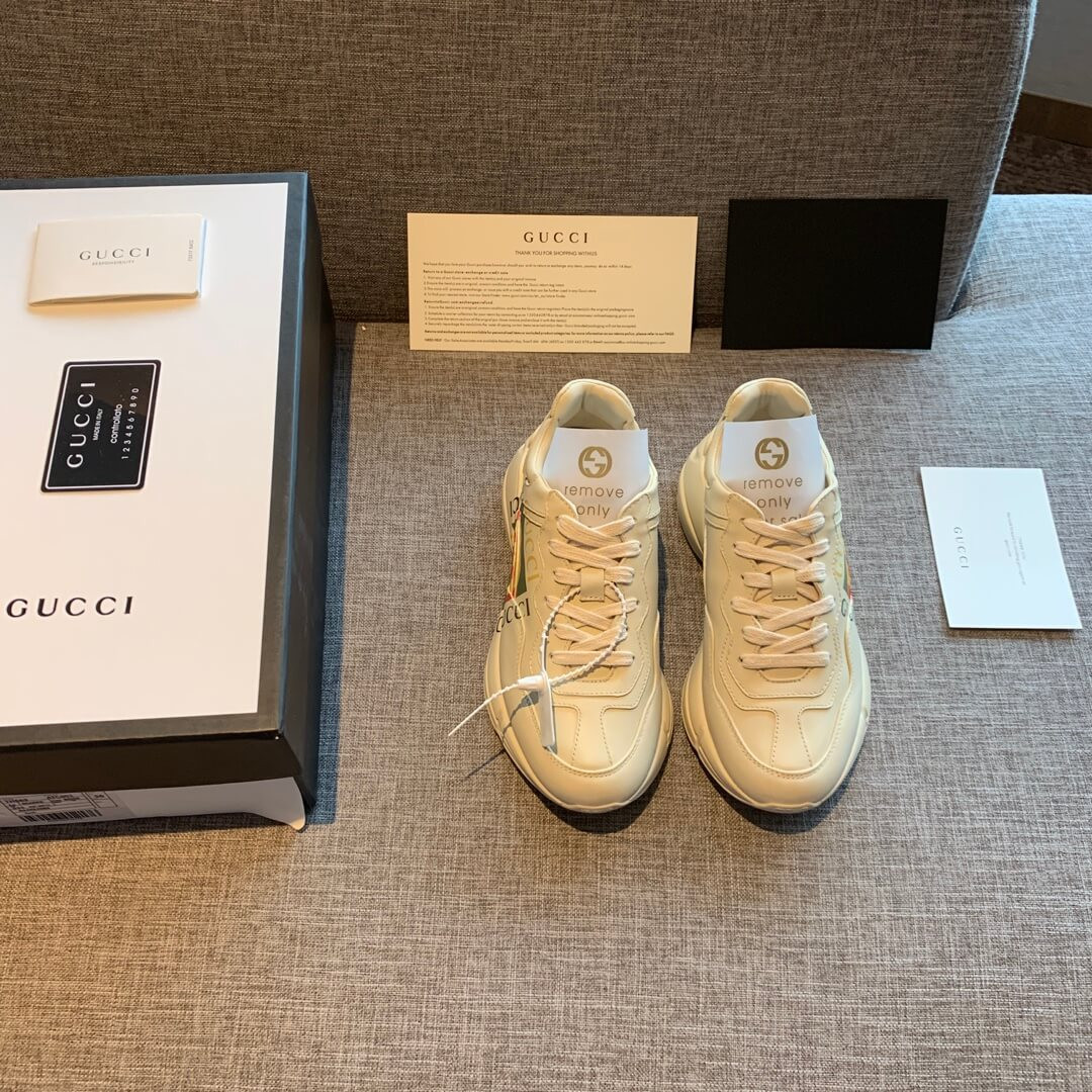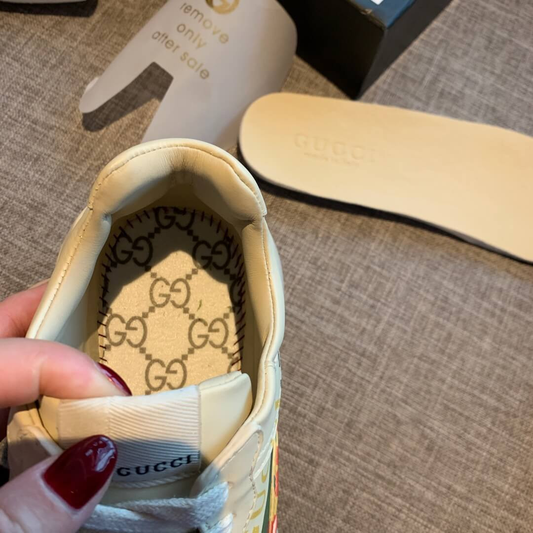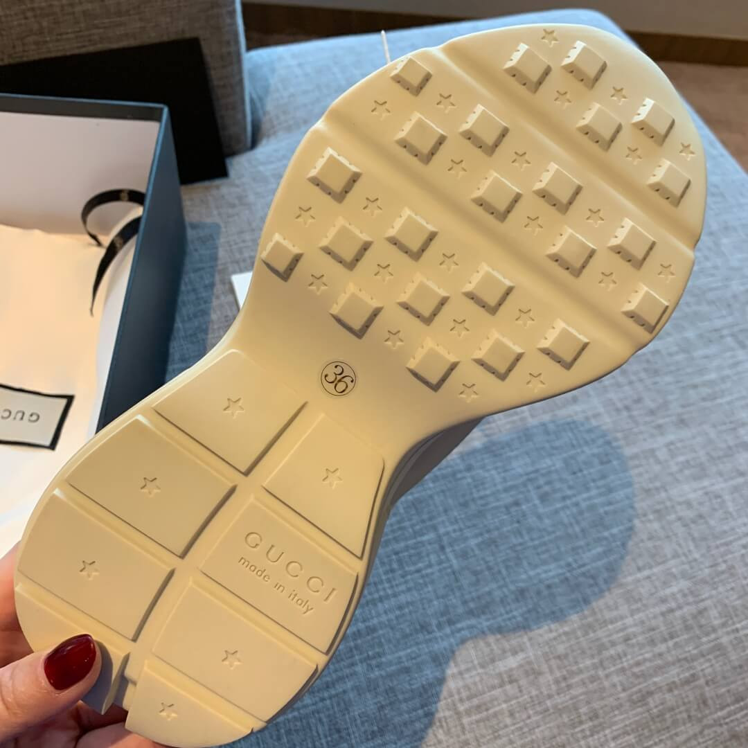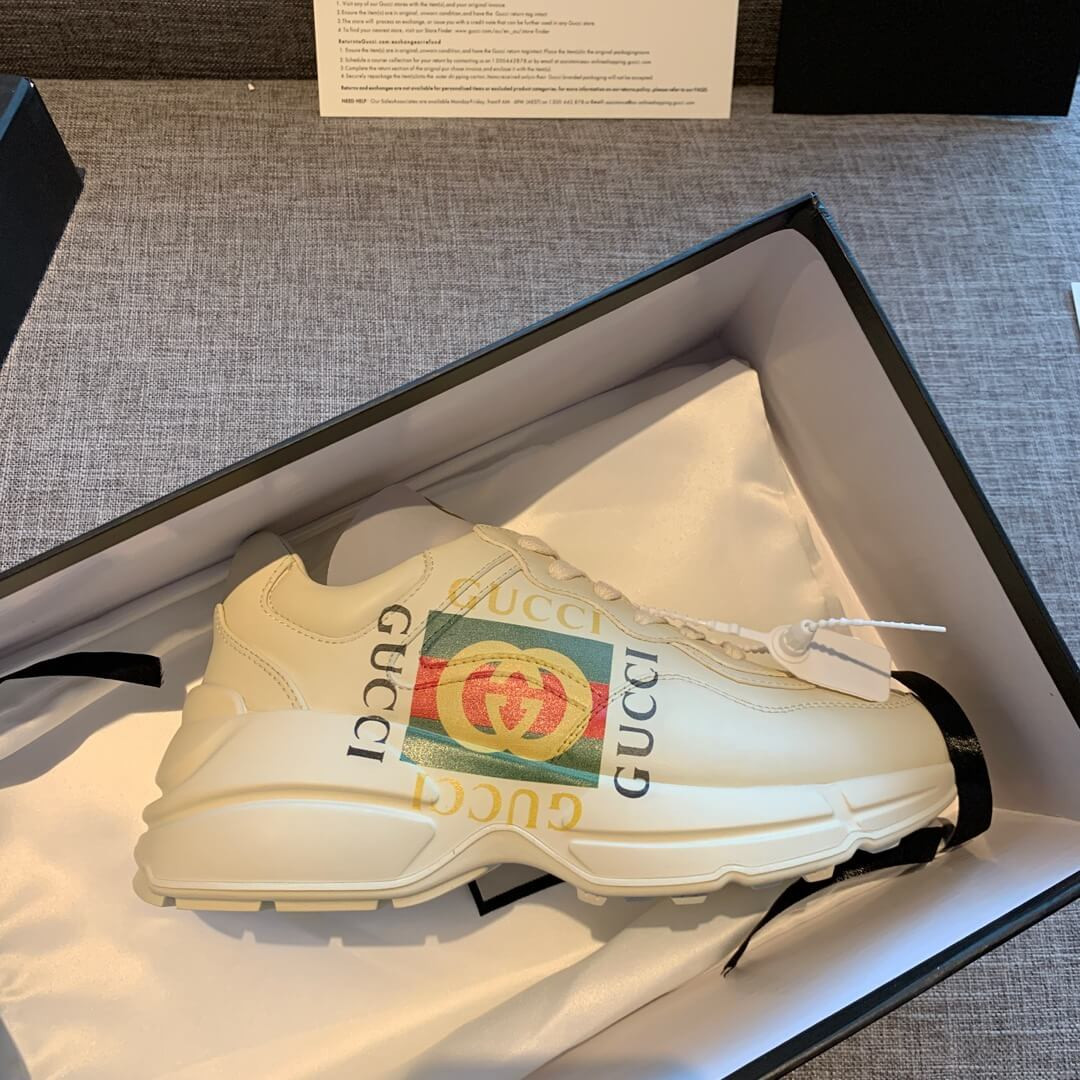 Designed with a thick sole and bulky construction, the sneaker has a retro influence in leather with a vintage Gucci logo inspired by prints from the 1980s.
