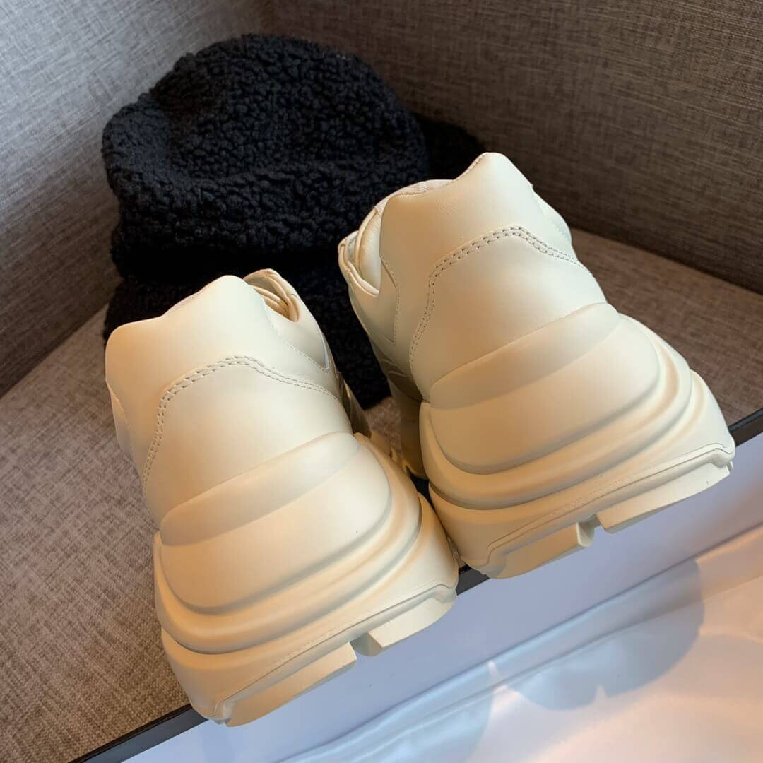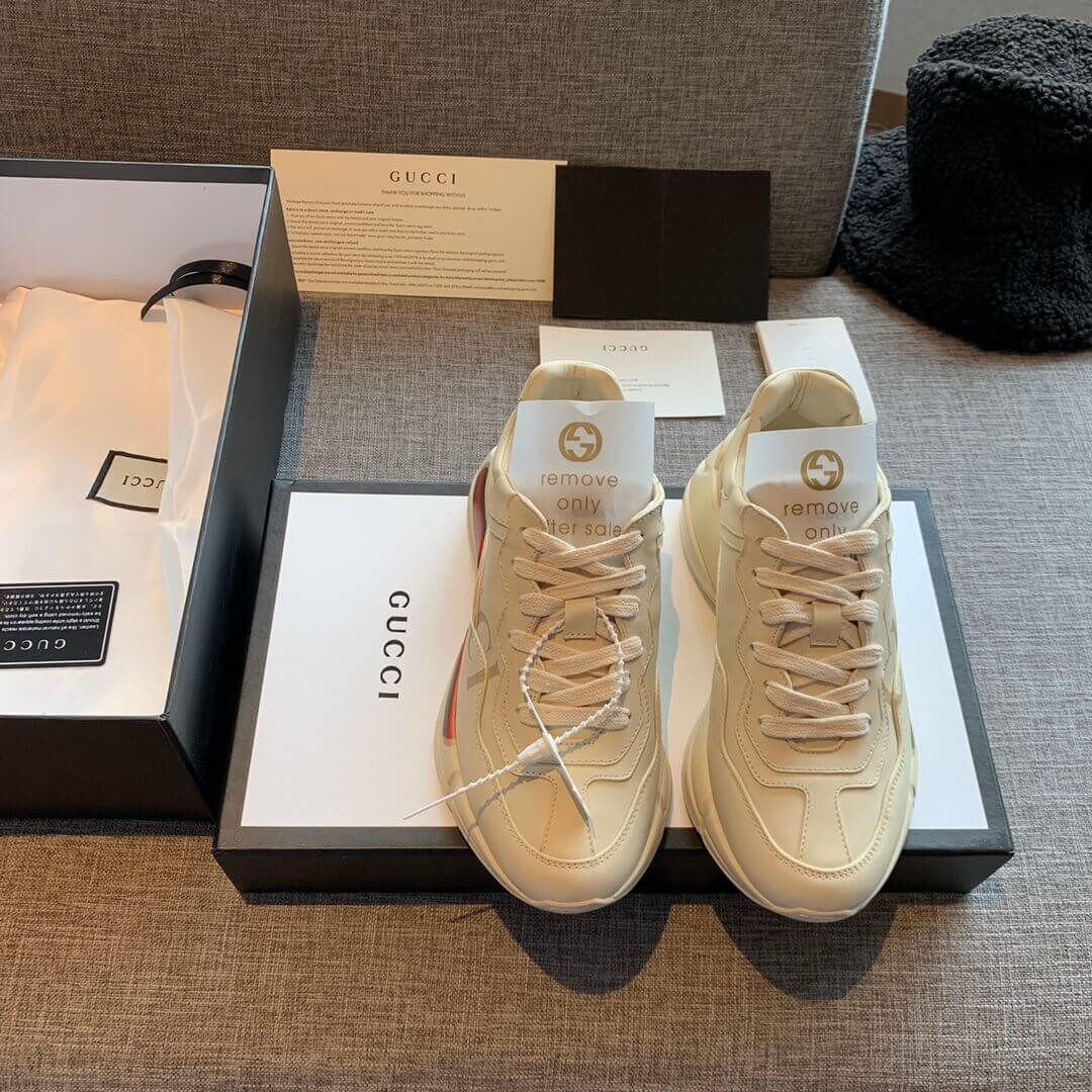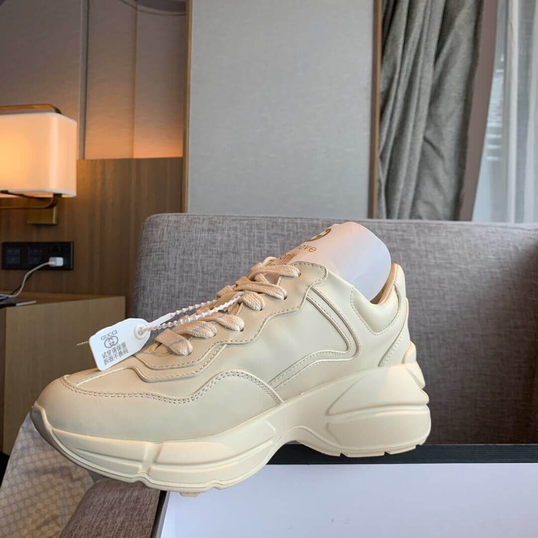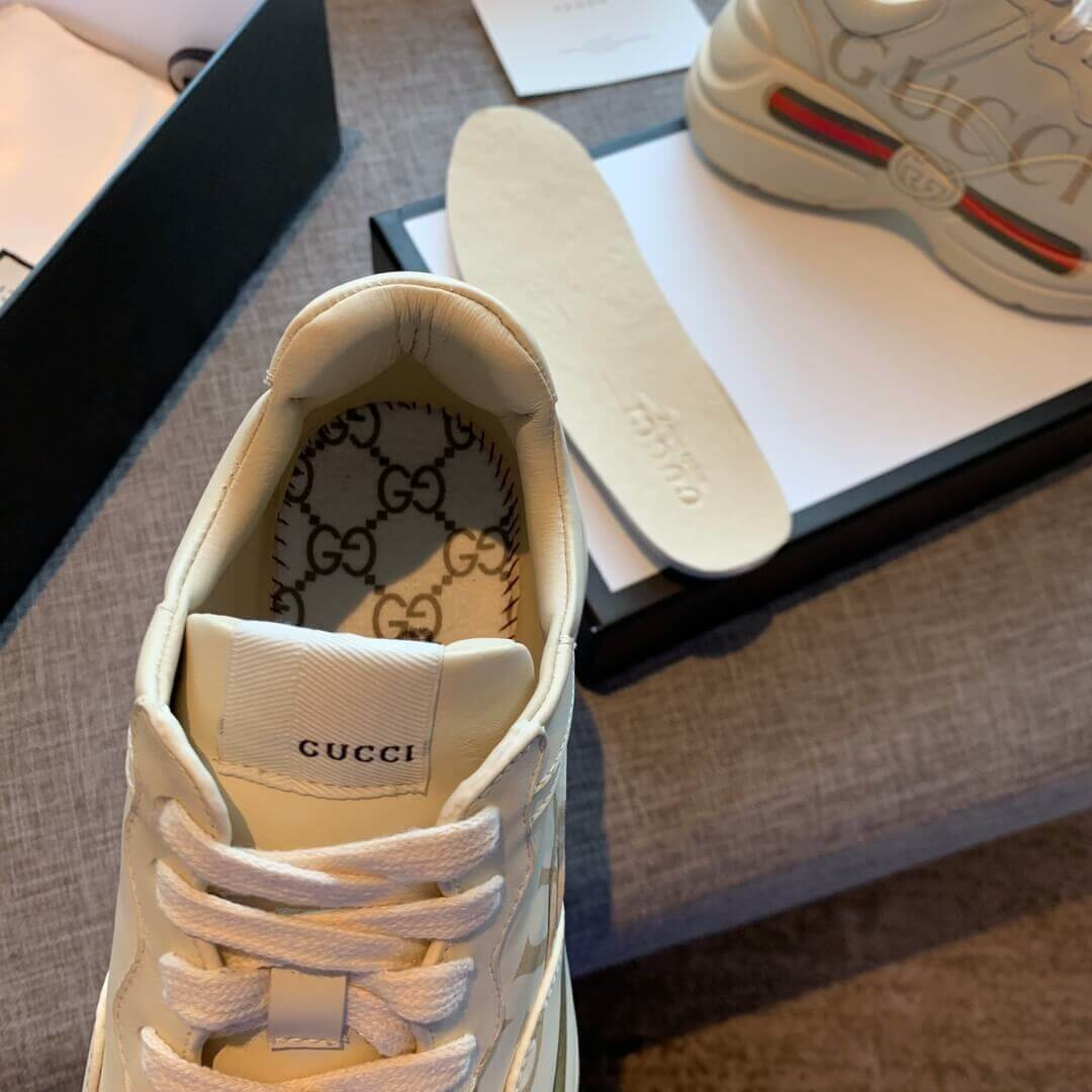 Designed with a thick sole and bulky construction, the sneaker has a retro influence in leather with a vintage Gucci logo inspiredby prints from the 1980s.