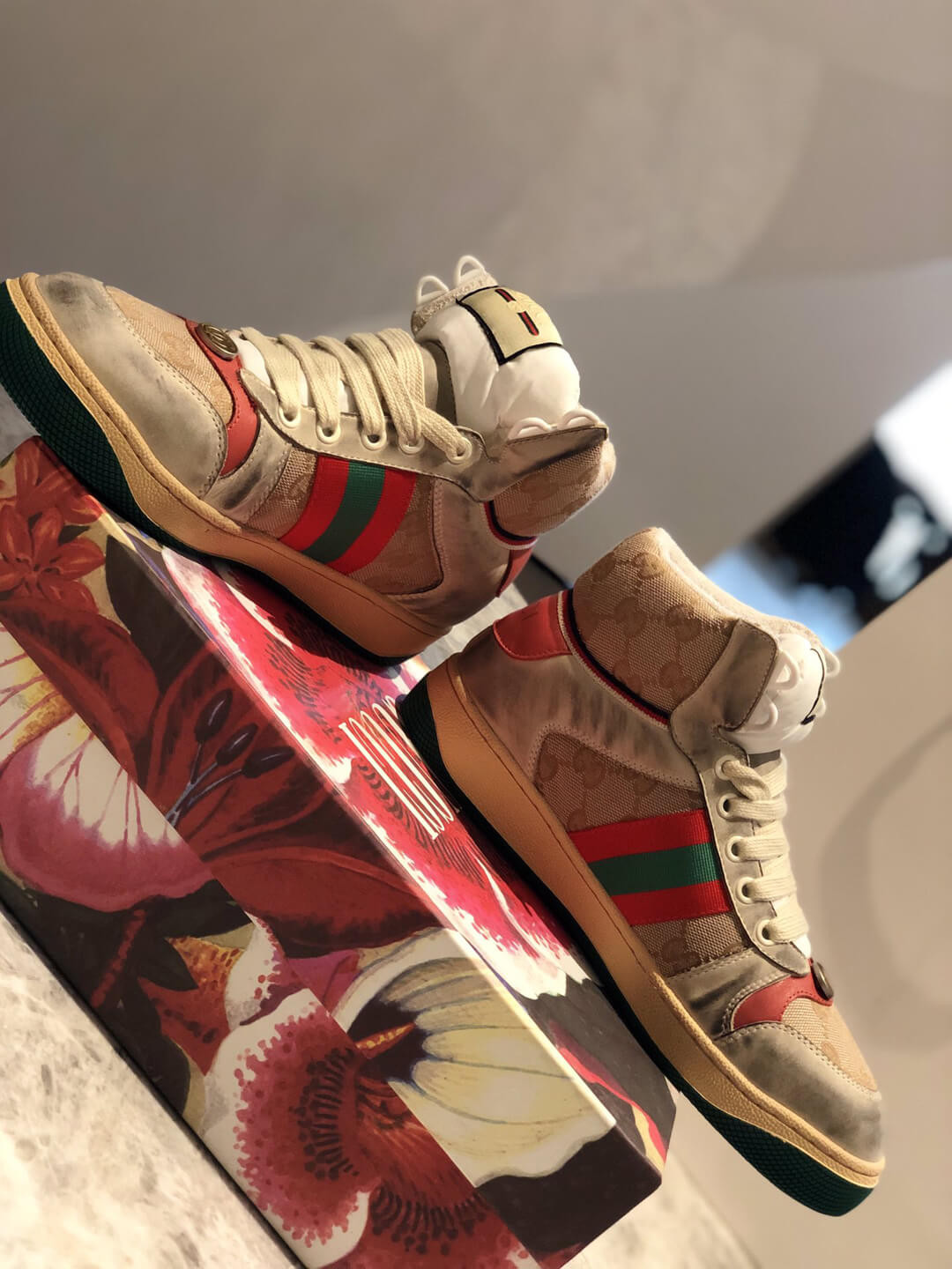 - Foldable two-sided tongue with Gucci vintage logo label