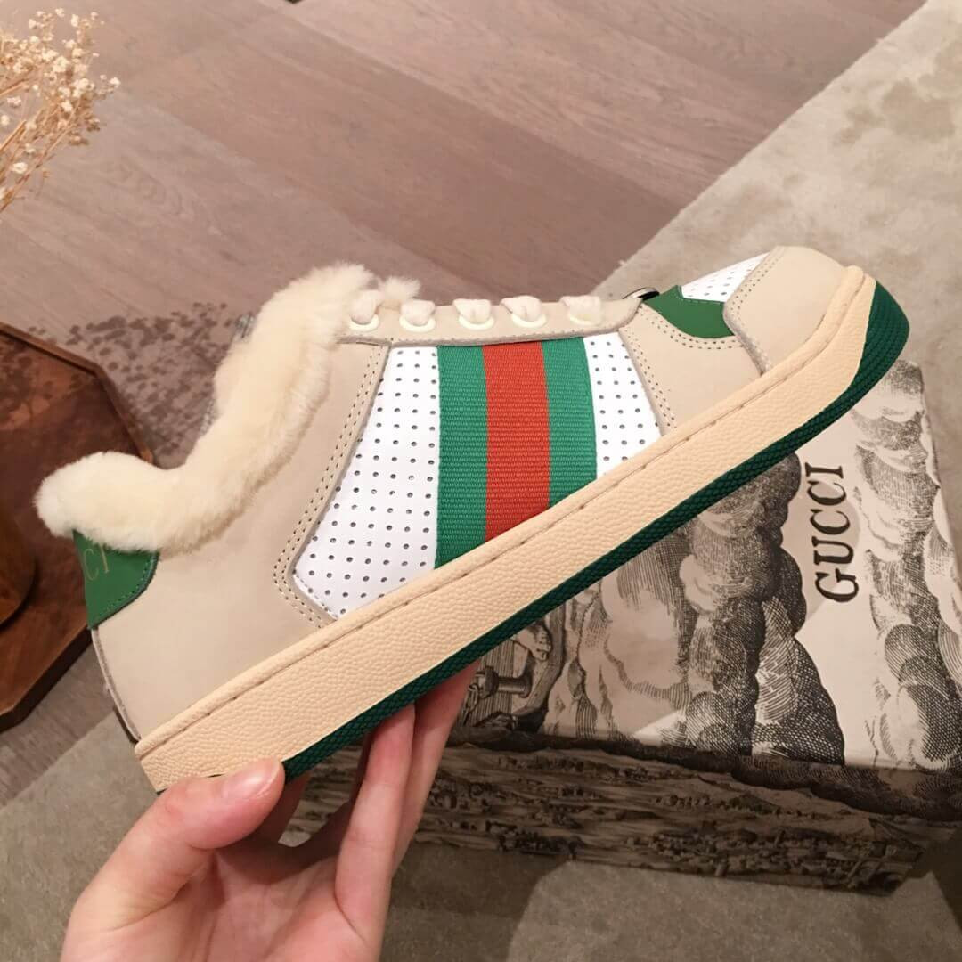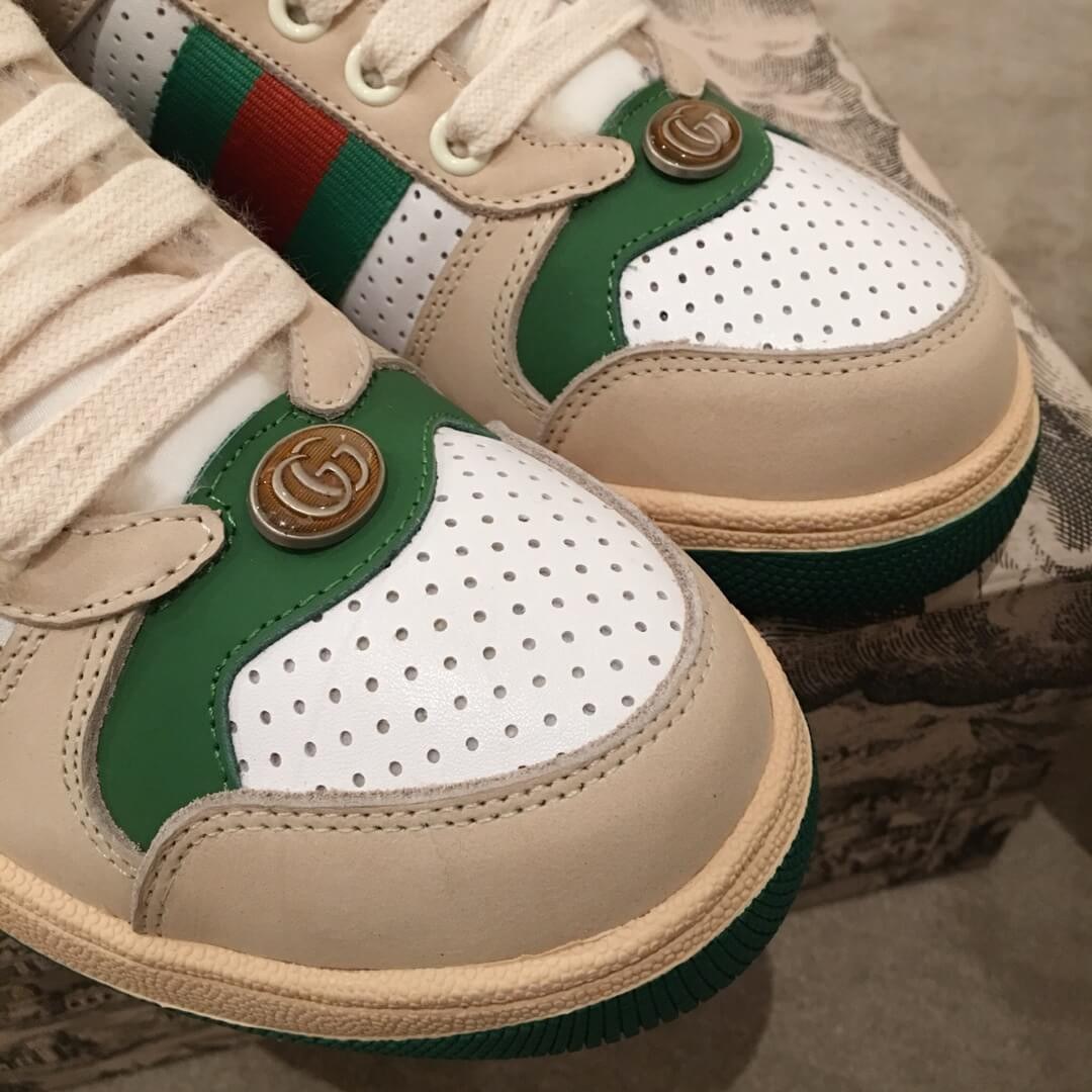 - White perforated and off-white leather