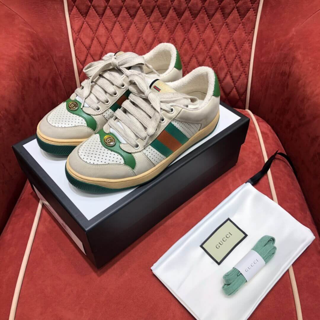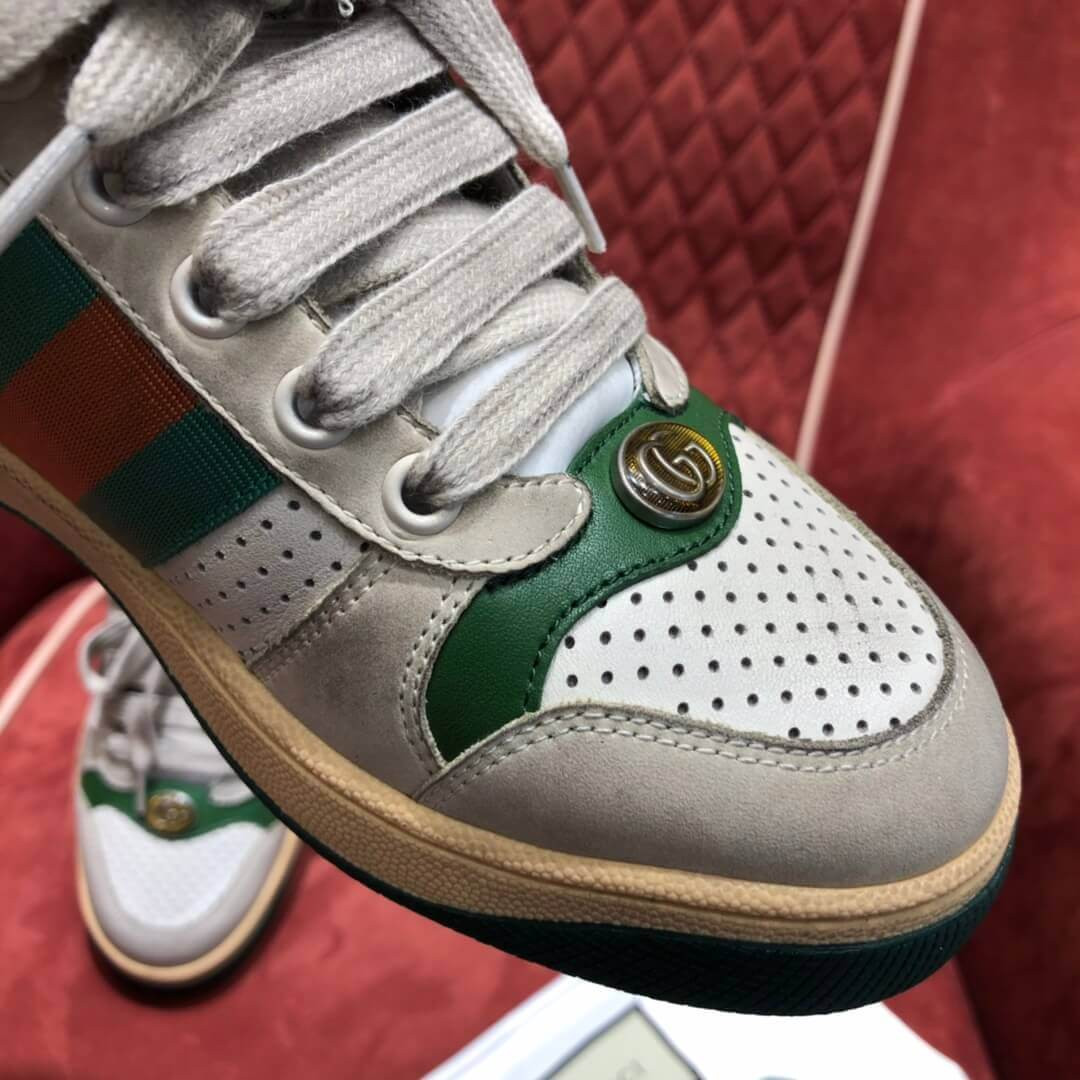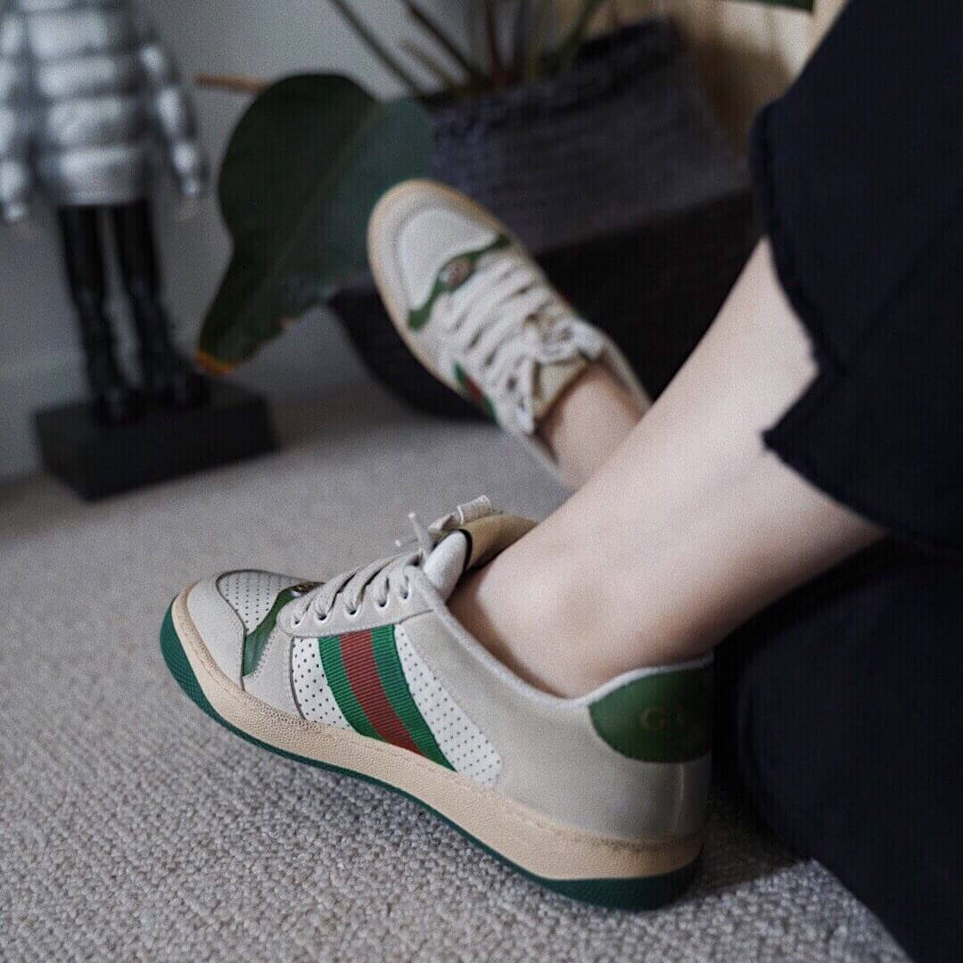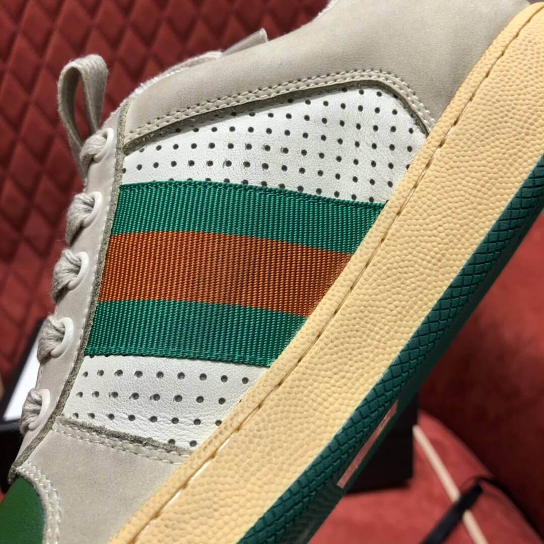 Influenced by classic trainers from the '70s, the Screener sneakers—named for the defensivesports move—feature the Web stripe on the side and the vintage Gucci logo. A pastiche of different influences that span across decades, the Pre-Fall 2019 collection continues to