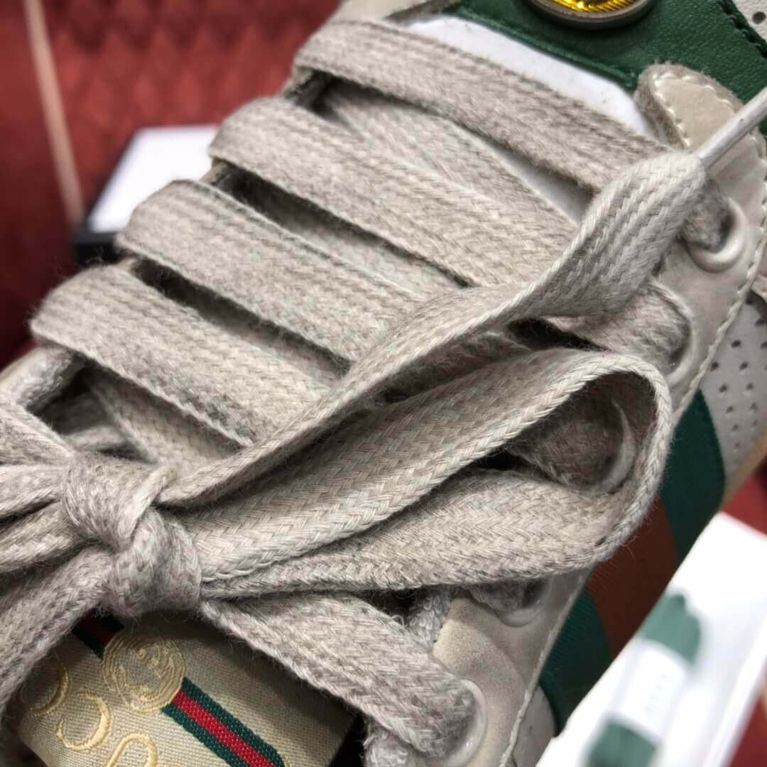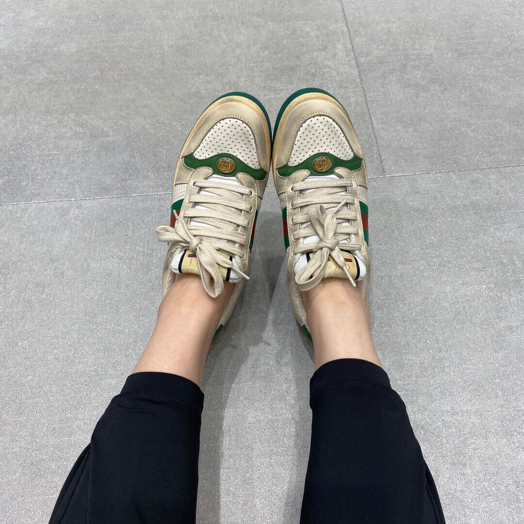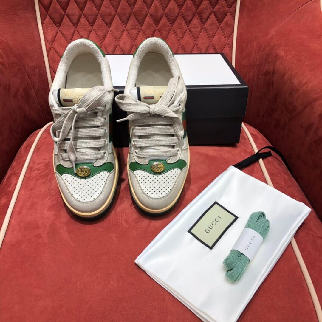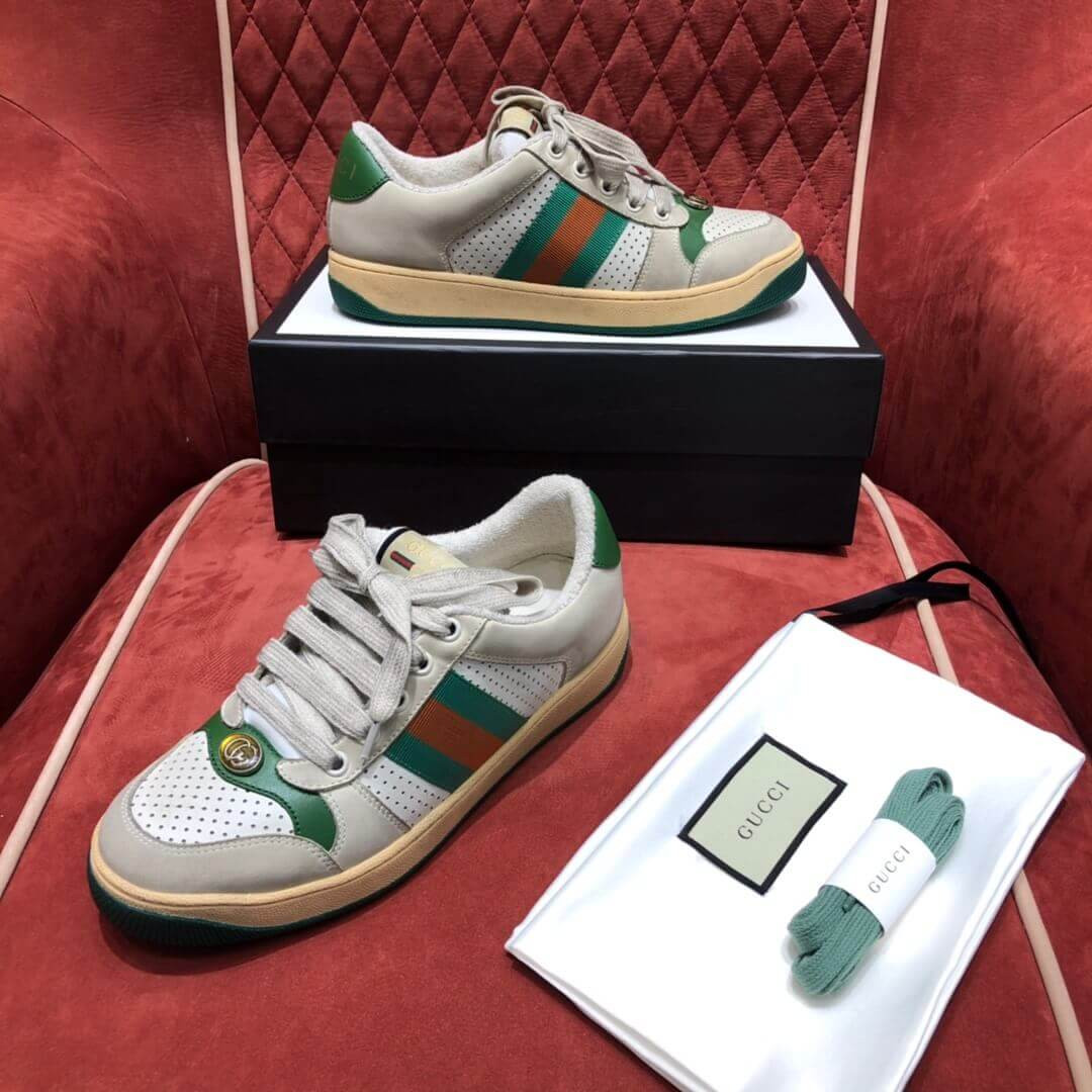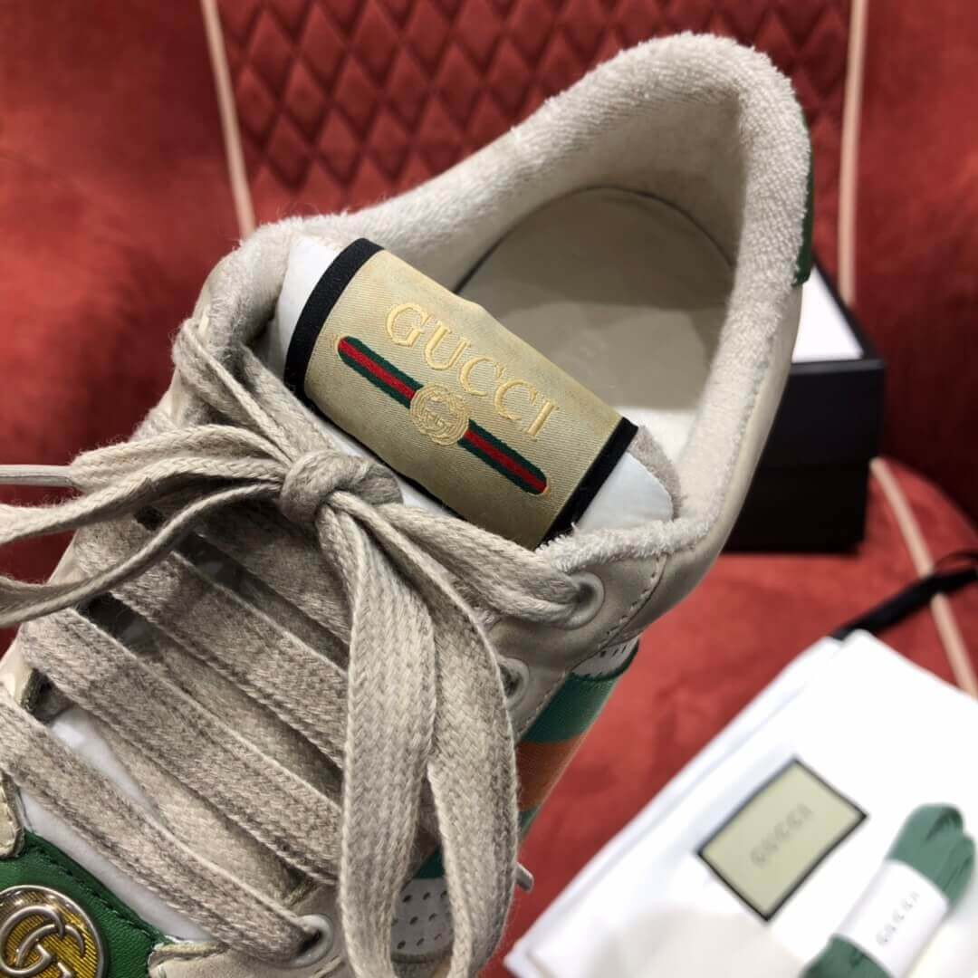 Influenced by classic trainers from the '70s, the Screener sneakers—named for the defensivesports move—feature the Web stripe on the side and the vintage Gucci logo. A pastiche of different influences that span across decades, the Pre-Fall 2019 collection continues to