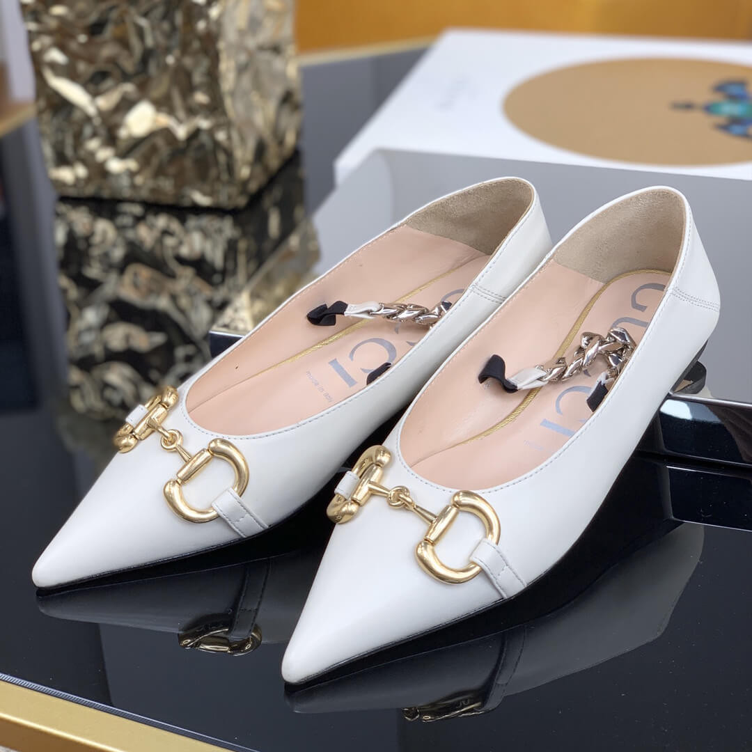 Gucci Leather Ballet Flat With Horsebit 621161 White