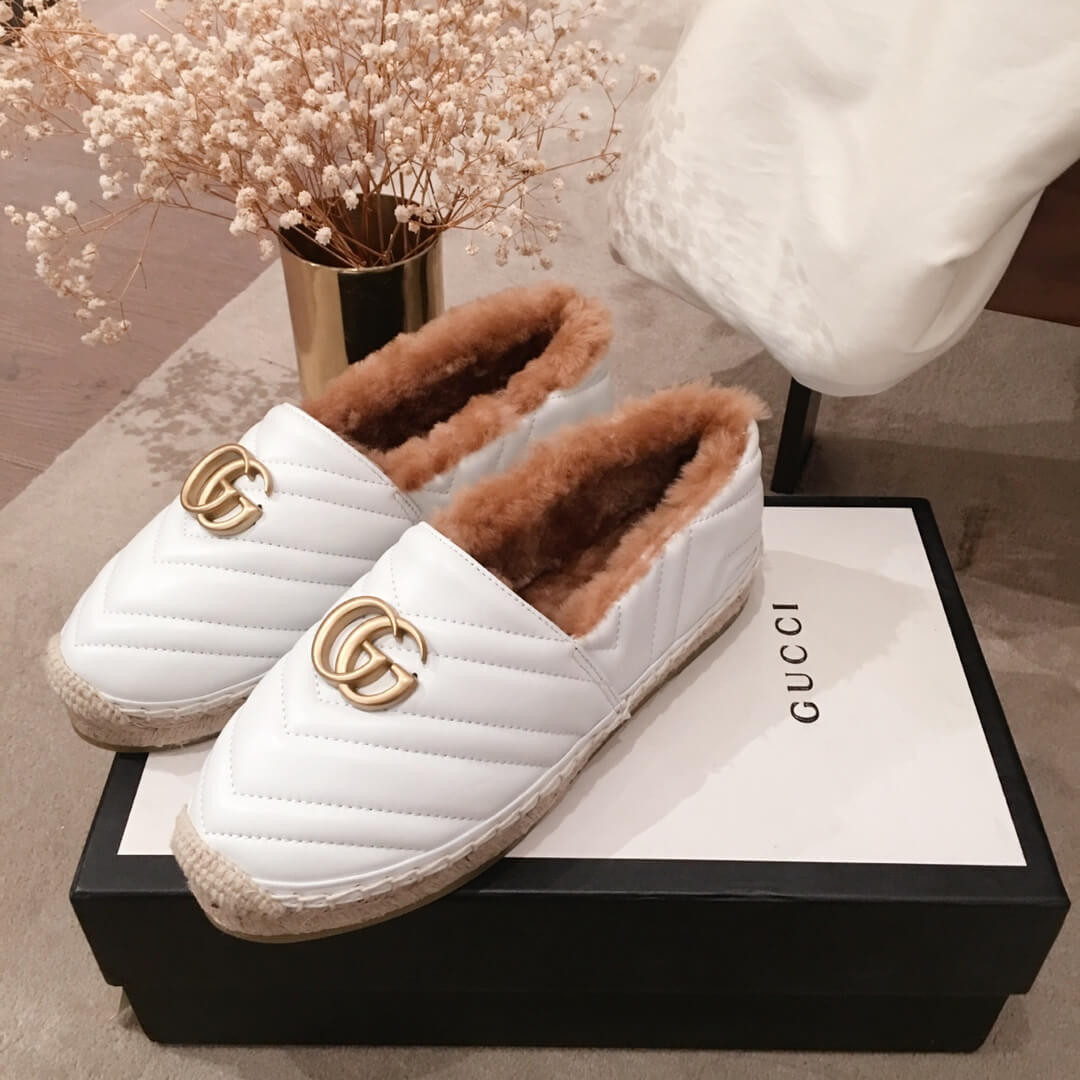 Gucci Chevron Leather Espadrille With Double G 551890 White