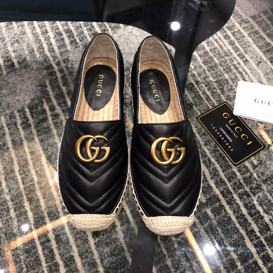 Gucci Chevron Leather Espadrille With Double G 551890 Black
