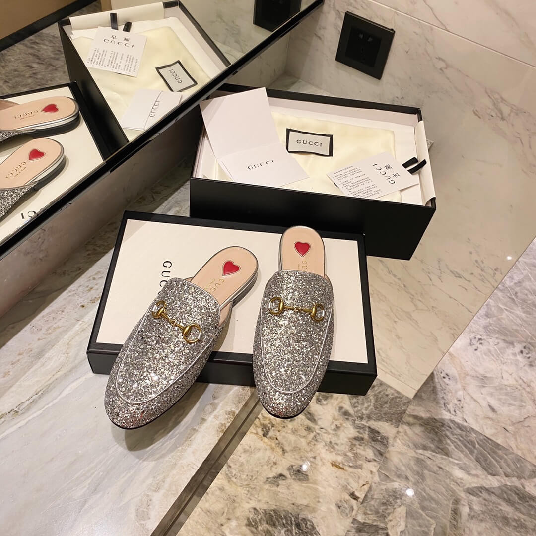 Gucci Princetown Bees and Stars Embroidered Fur Slipper Mules 448653
