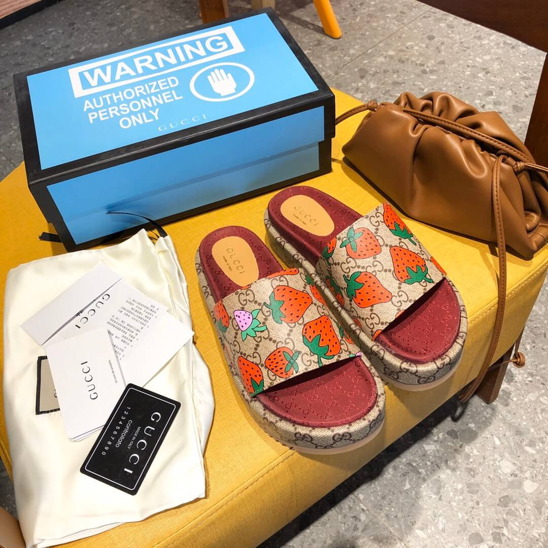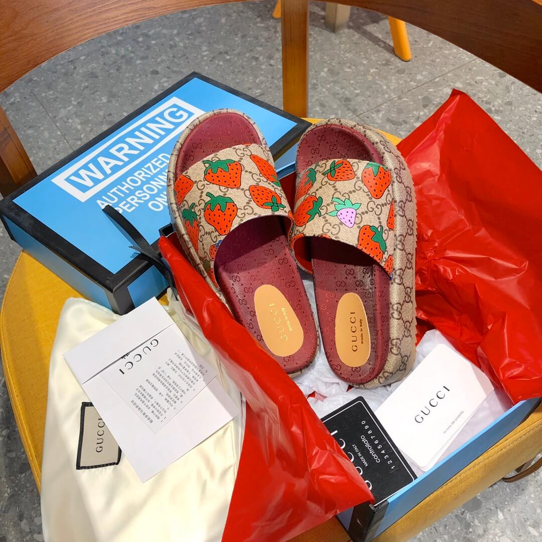 Gucci Original GG Canvas Slide Sandals 573018 Strawberry