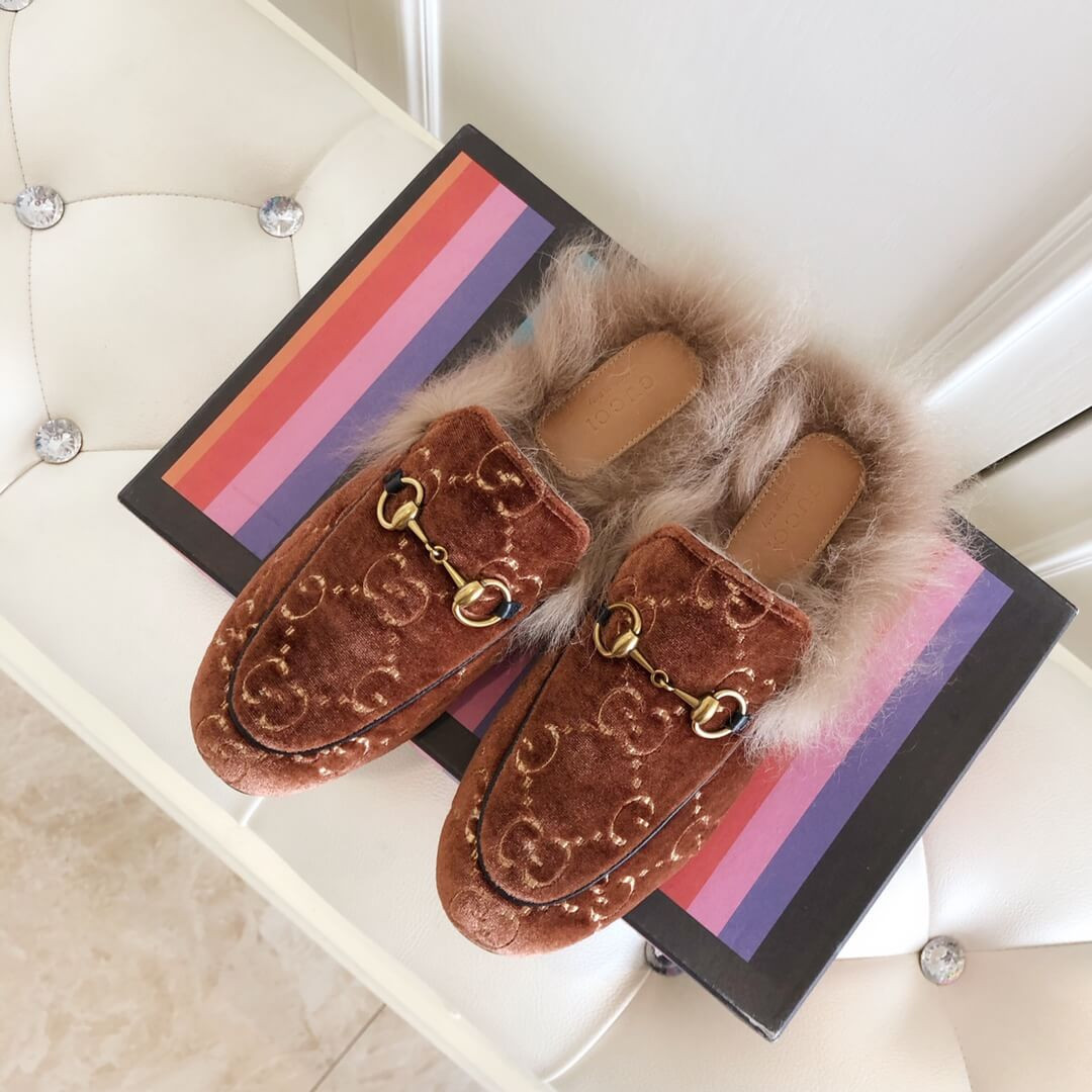 Gucci Princetown GG Velvet Slipper 448657 Beige/Black