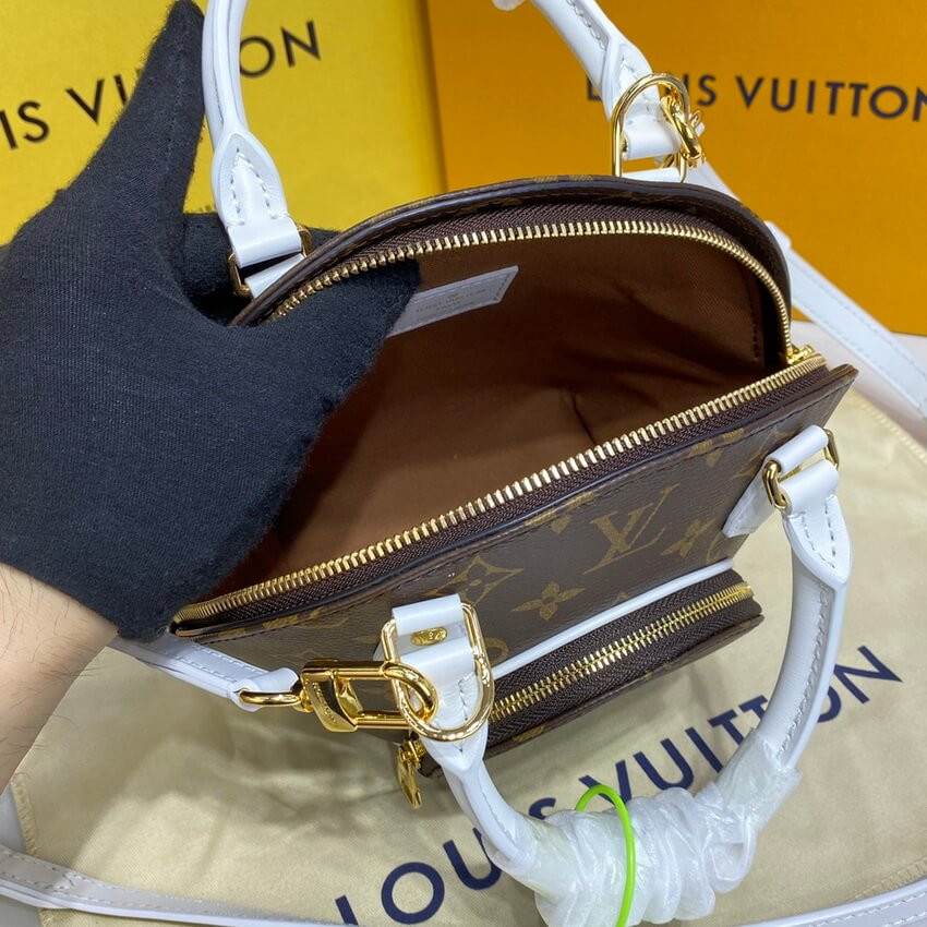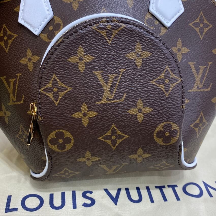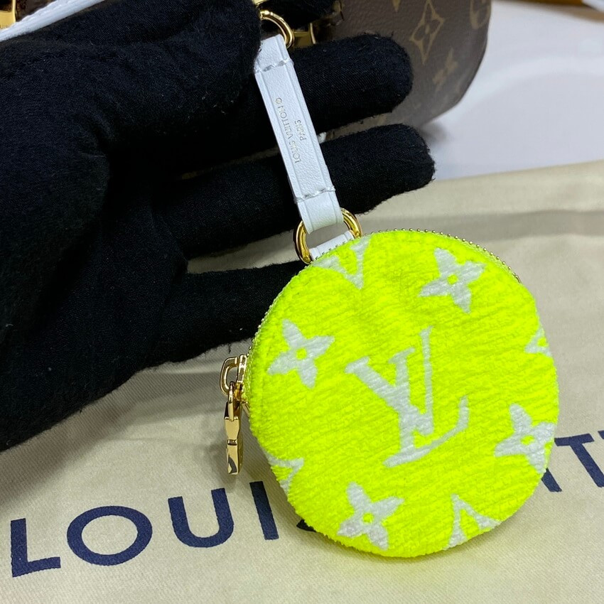 Inspired by a design from 1997, Nicolas Ghesquière created the Ellipse BB handbag, with its distinctive curved shape and leather piping. The Ellipse is made from Monogram canvas with trim and leather handles in white cowhide. Its smaller proportions and unique form are perfectly completed by the Round Zippy Coin Purse in tennis-ball yellow.