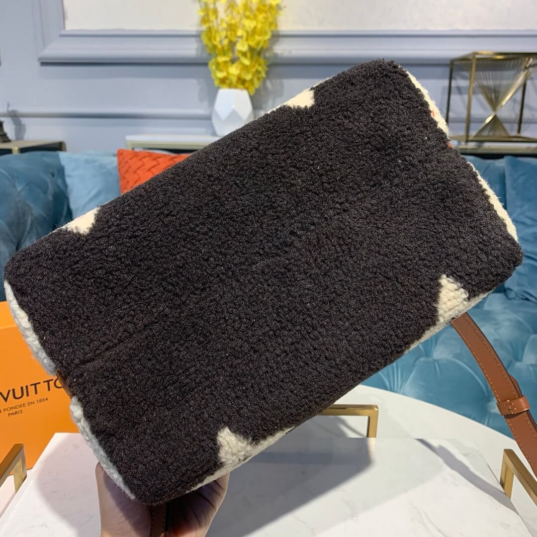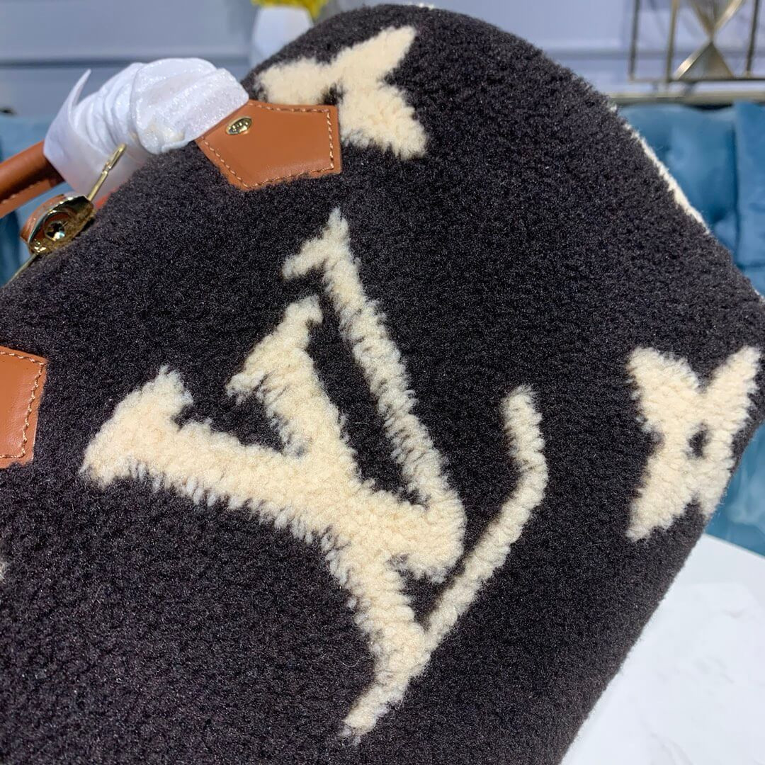 Louis Vuitton's iconic Speedy Bandoulière 25 handbag is given a chic new twist for the Monogram LV Teddy limited edition. In a demonstration of the House's leather-goods craftsmanship, an elaborate intarsia technique is used to create a giant Monogram pattern in luxurious shearling. The result is an irresistibly fluffy look and super-soft feel.