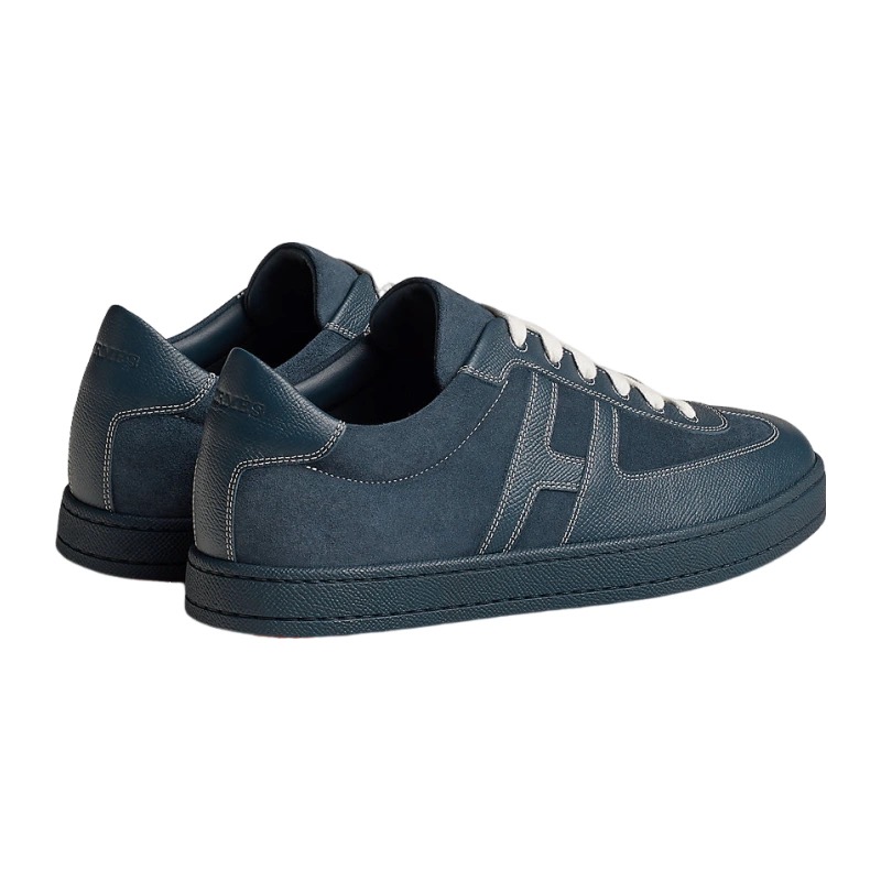 • Hermes men's shoes blue leather stitching low-top lace-up casual sneakers