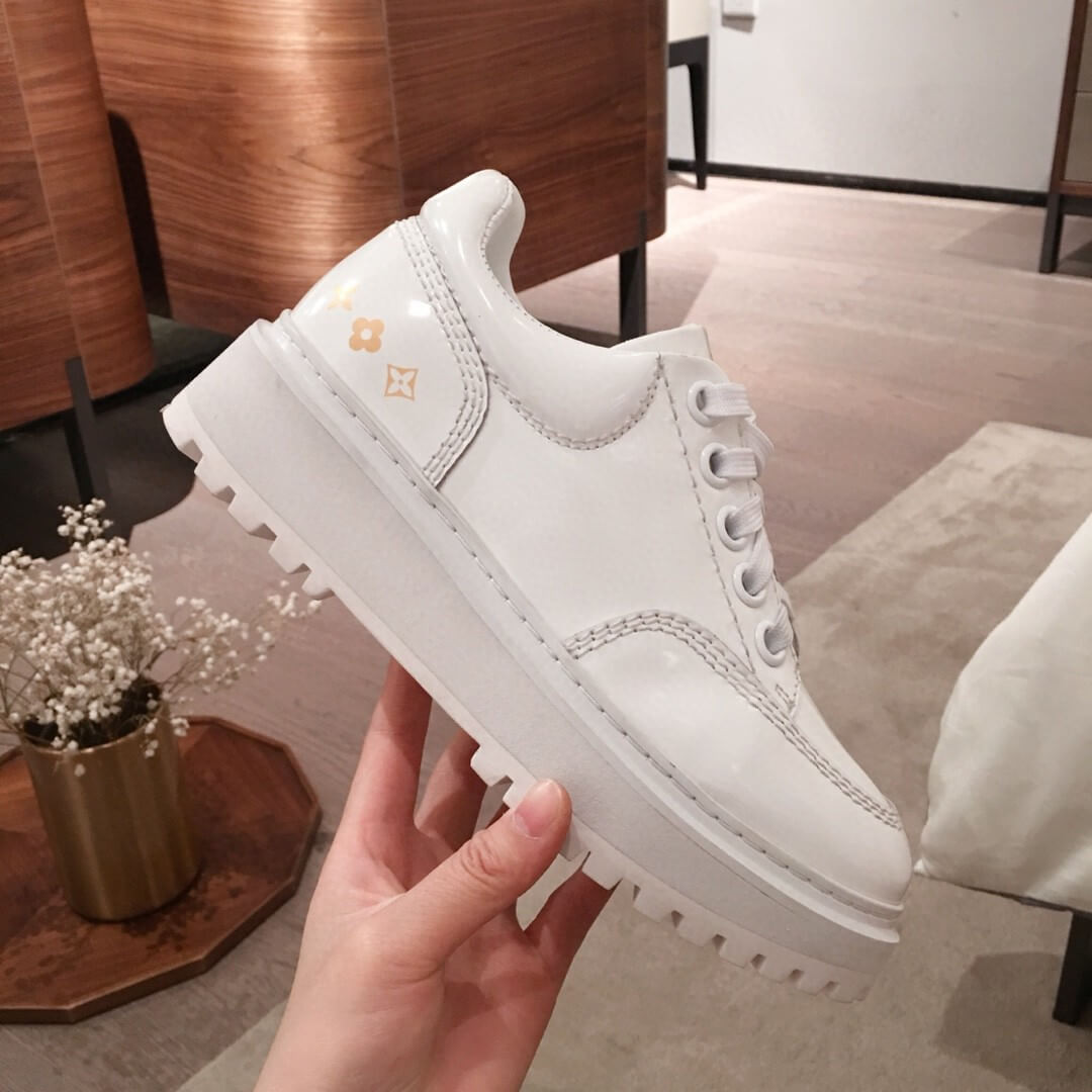 Sneaker in glazed calf leather with a gold Monogram flowers signature and an extra light outsole.