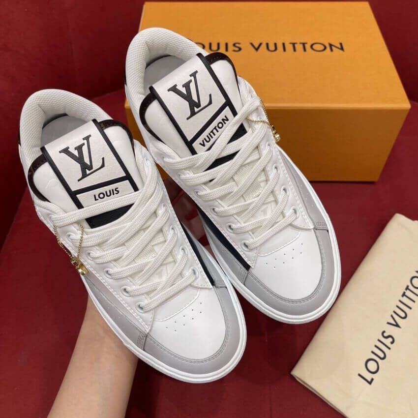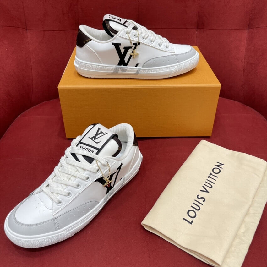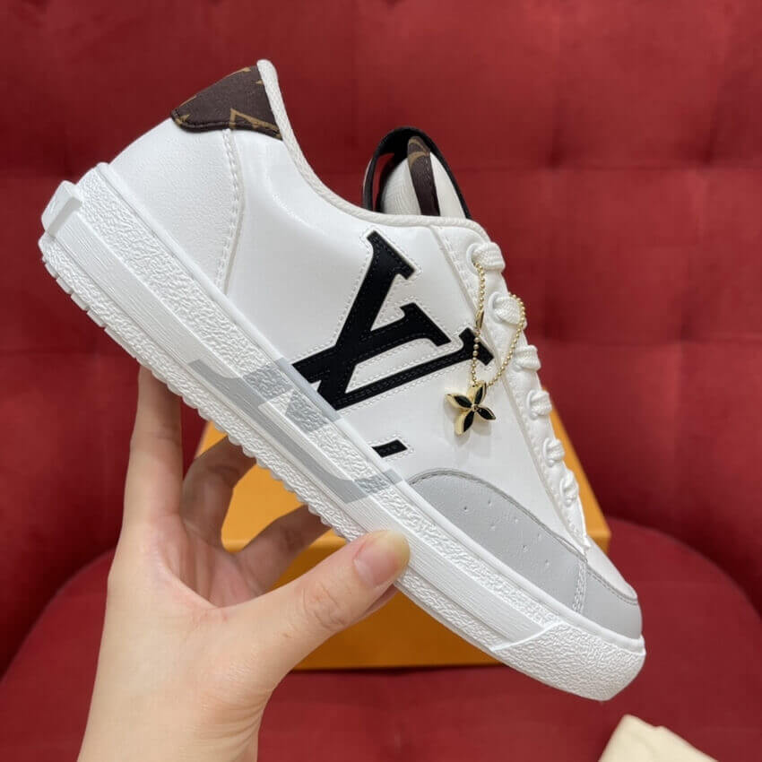 The Charlie sneaker is a big first for Louis Vuitton. Not only is it the first couple shoe but also the first eco-designed shoe. Made with 90% sustainable materials, the upper is crafted from a mix of recycled and bio-based materials, while the outsole comes from recycled rubber. As an exclusive for Chinese Valentine's Day, it features either a gold or silver accessory that forms the perfect Monogram charm when interlocked. Gold accessories are found on women pairs and silver accessories are found on men pairs. For any questions, please contact customer service.