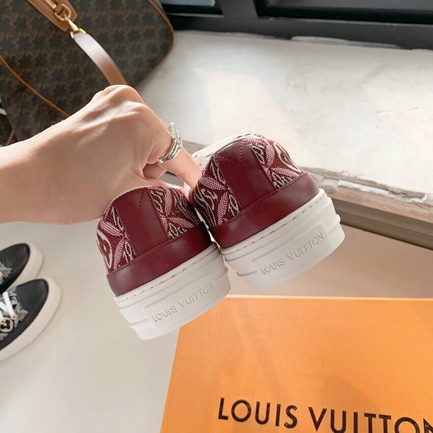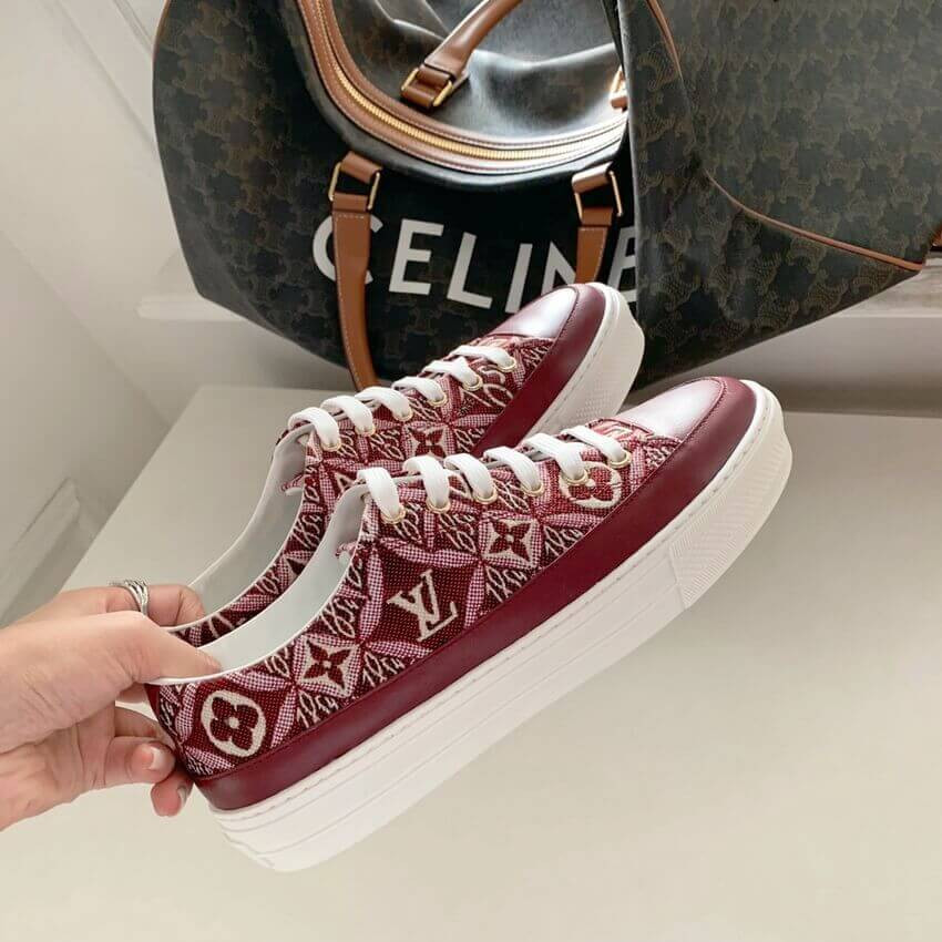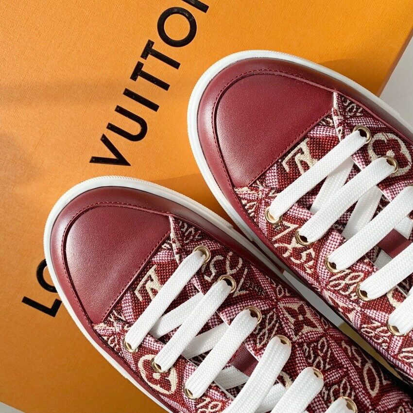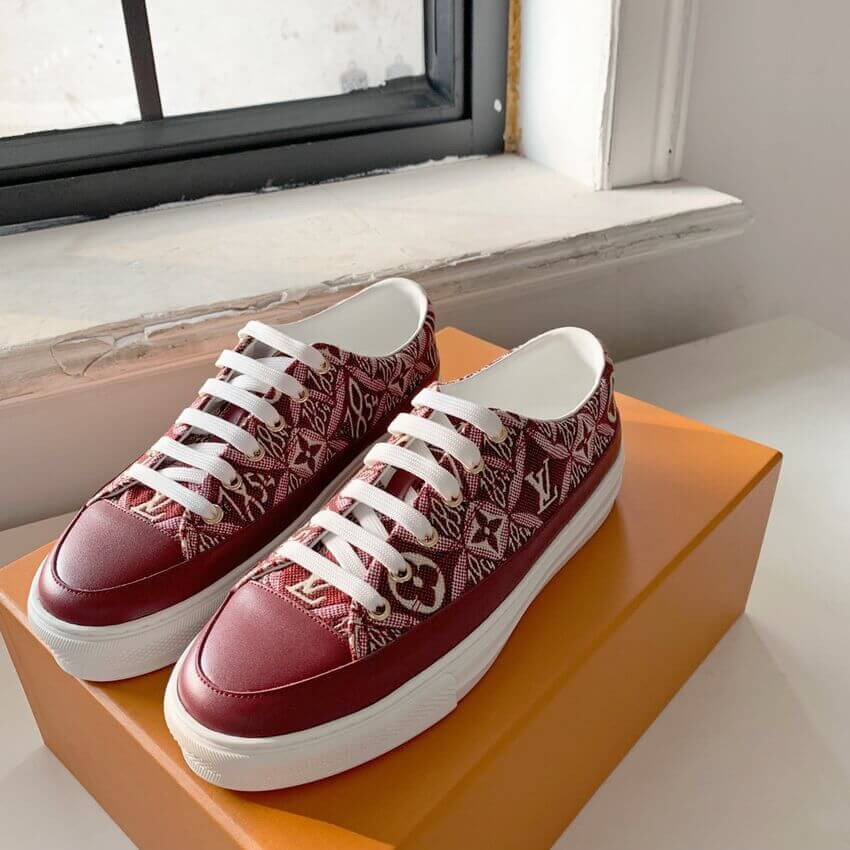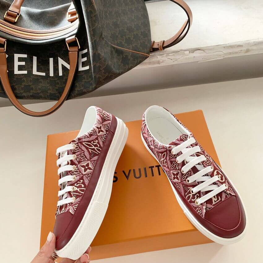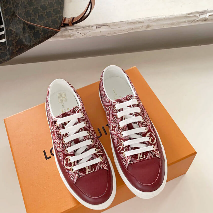 The Stellar sneaker is revisited in jacquard textile for the Since 1854 capsule of leather goods, accessories and ready-to-wear,which features a vintage-look canvas designed by Louis Vuitton Artistic Director Nicolas Ghesquière. The name refers to the date the House was founded. This classic sneaker is finished with matching leather trim and a white rubber outsole.