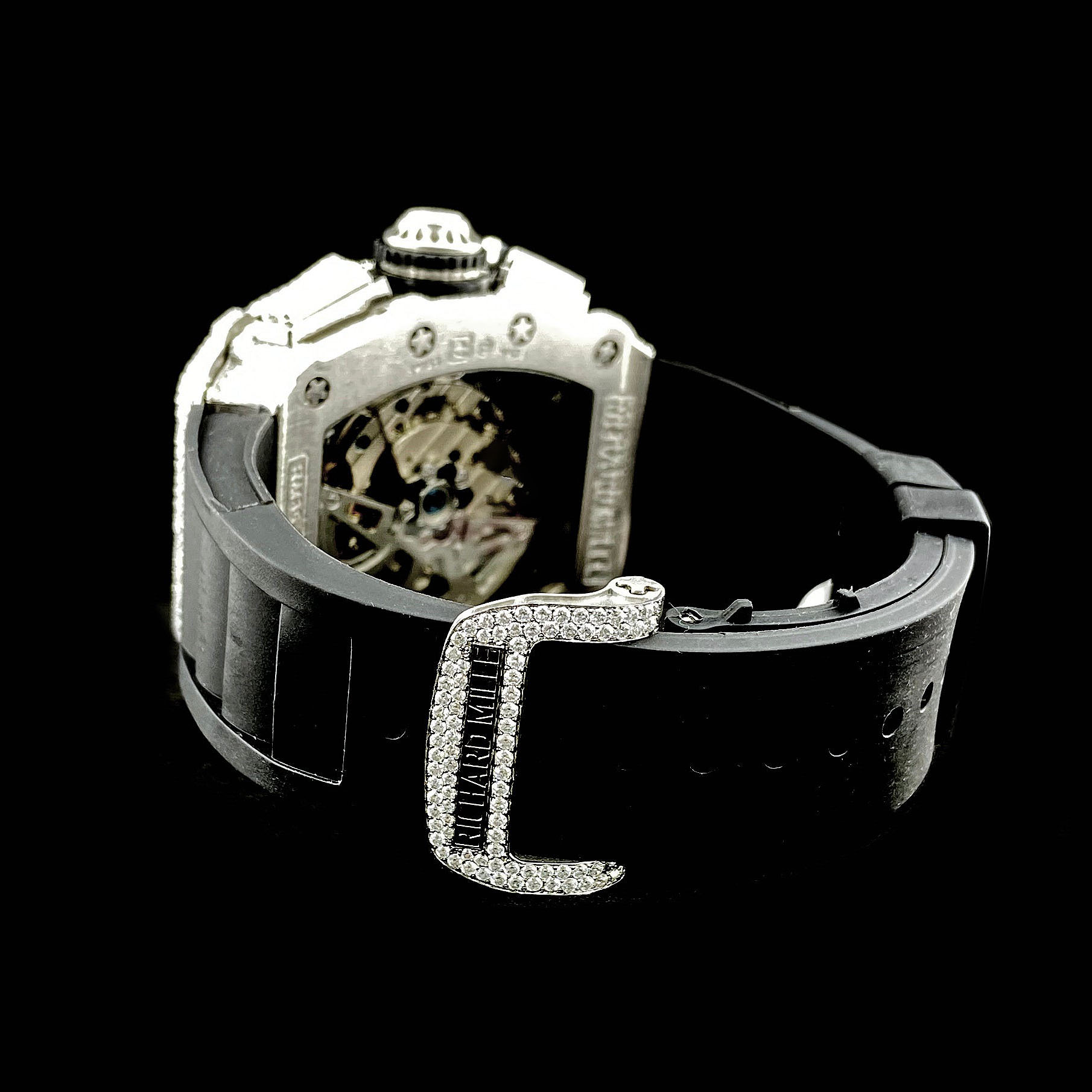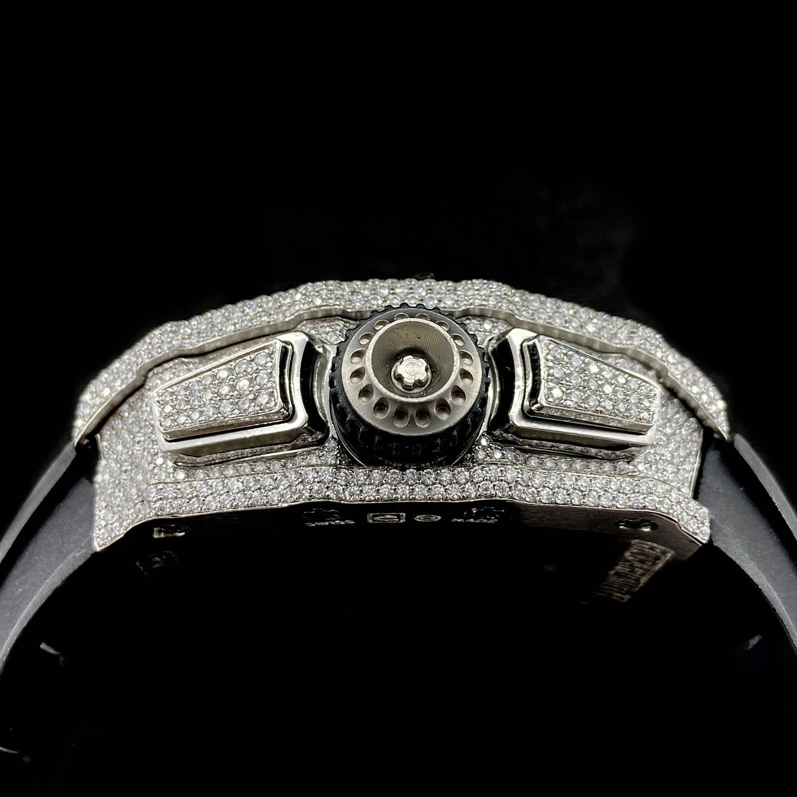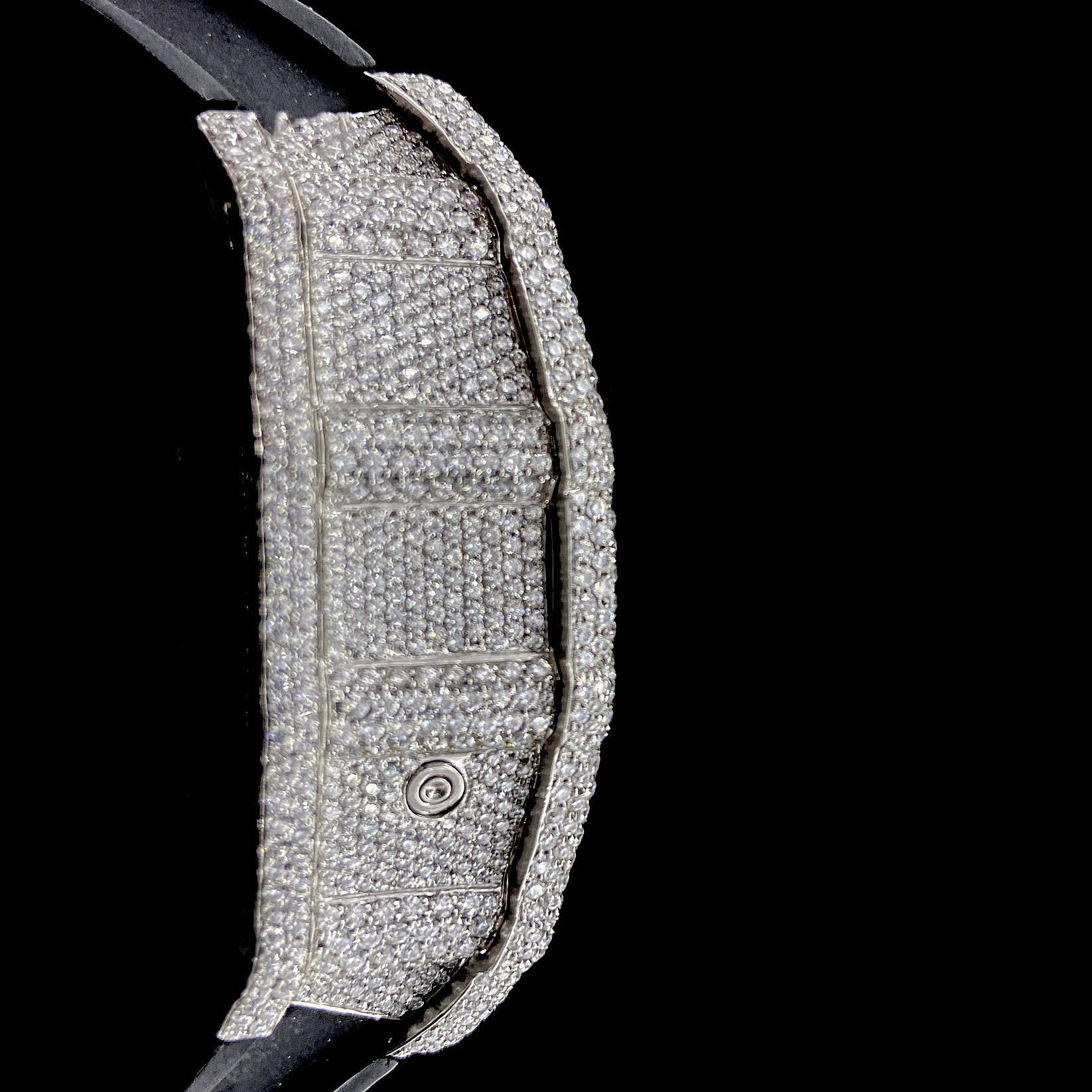 We use Rhinestone or Zircon for our iced out watches, and all our diamond watches feature high-quality movement with a super clone standard. If you prefer real moissanite, the watch will cost $3000-4000 and will pass testing with cert.
