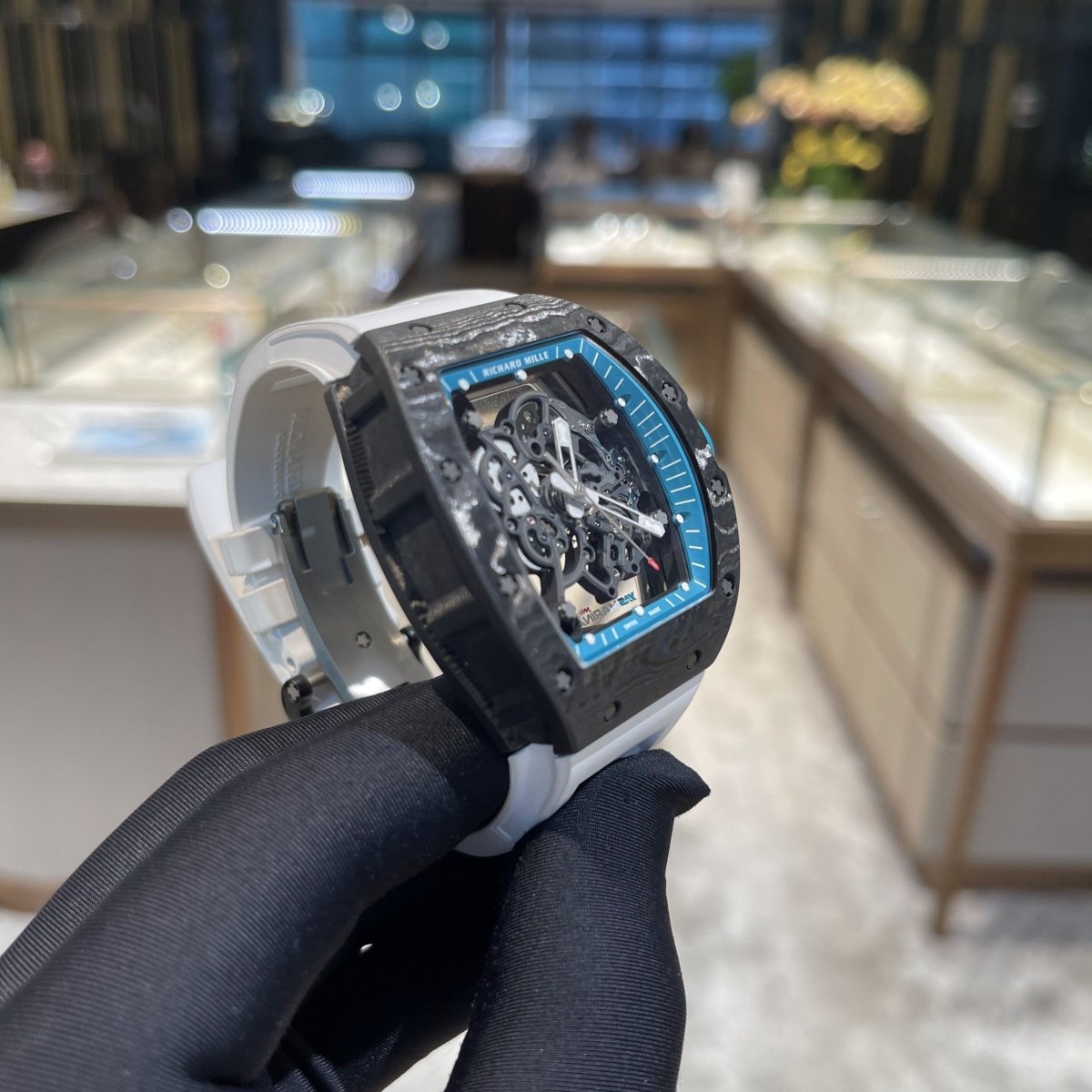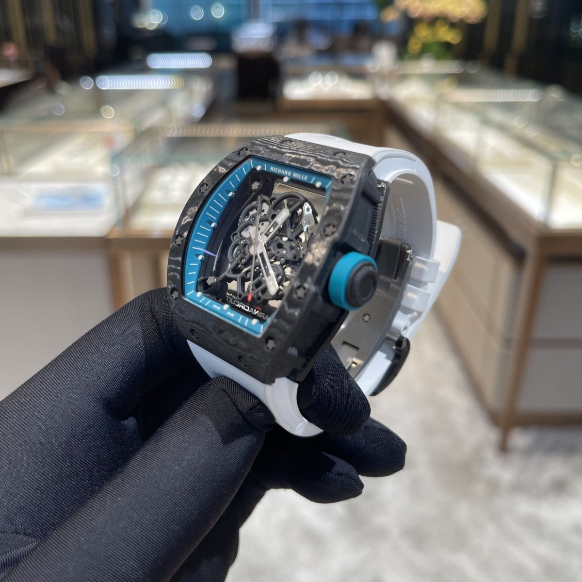 The RM055 Yas Marina is a limited-edition of 50 pieces. It has a 43mm NTPT case with inner bezel of tiffany blue colour. Named after the popular Abu Dhabi Motorsport arena. the watch celebrates its namesake with a unique and exclusive skeletonized design.