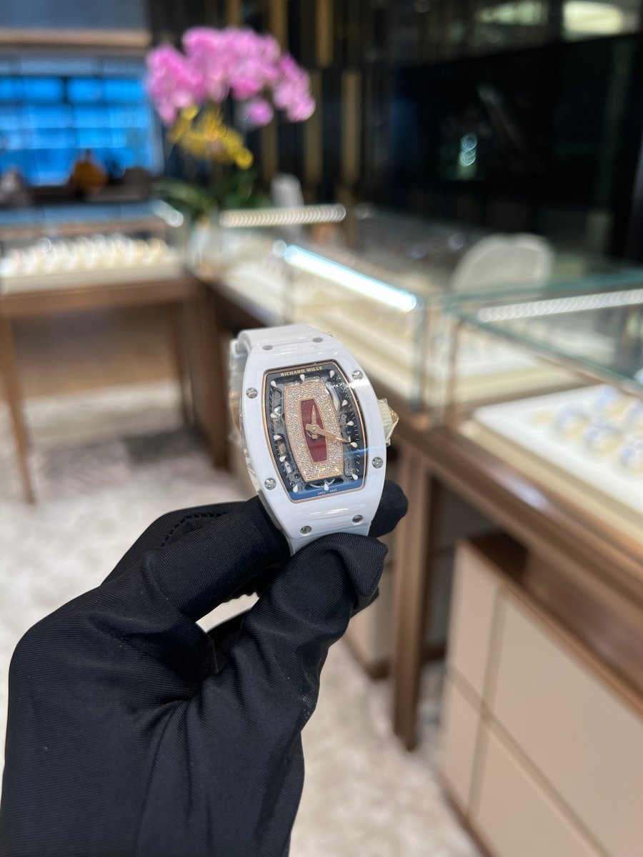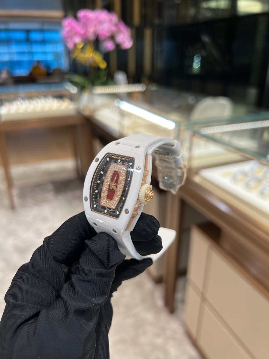 This RM07-01 White Ceramic Jasper is a luxurious and sophisticated timepiece for lady. Crafted with beautiful white ceramic and a jasper dial. this timepiece is powered by an in-house designed CRMA2 caliber automatic movement. offering a smooth and reliable timekeeping experience. White ceramic is one of the most popular material.